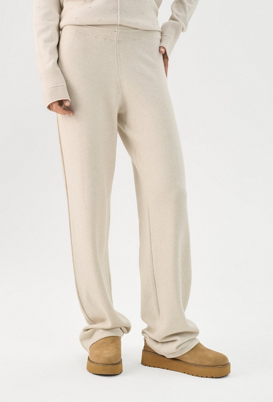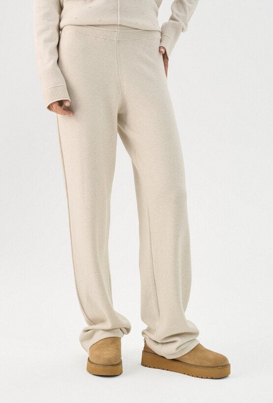 Beżowe spodnie dzianinowe