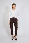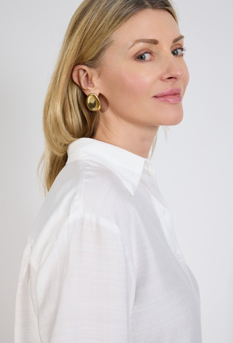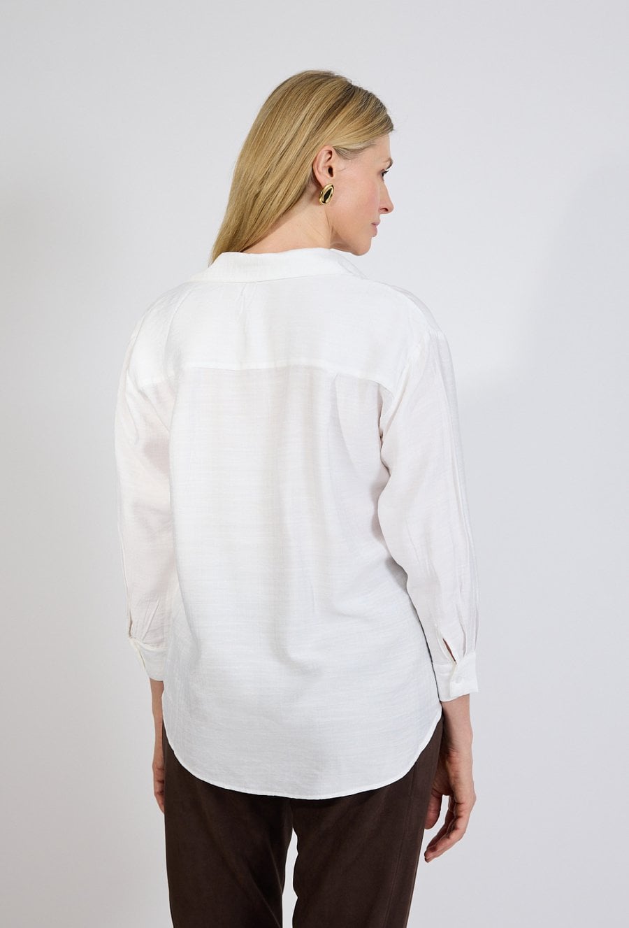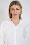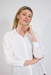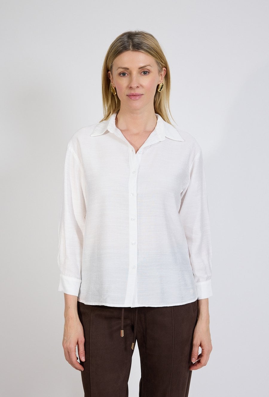 Ponadczasowa biała koszula damska to baza eleganckiej garderoby, która sprawdzi się w wielu stylizacjach. Prosty, klasyczny fason z kołnierzykiem oraz zapięciem na guziki nadaje całości eleganckiego charakteru, a lekki materiał zapewnia komfort noszenia przez cały dzień. Koszula doskonale komponuje się zarówno ze spodniami materiałowymi, jak i jeansami czy spódnicą, dzięki czemu z łatwością dopasujesz ją do stylizacji biurowych oraz casualowych. Minimalistyczny design sprawia, że model pozostaje aktualny niezależnie od sezonu. Modelka ma 179 cm wzrostu i nosi rozmiar 38/M