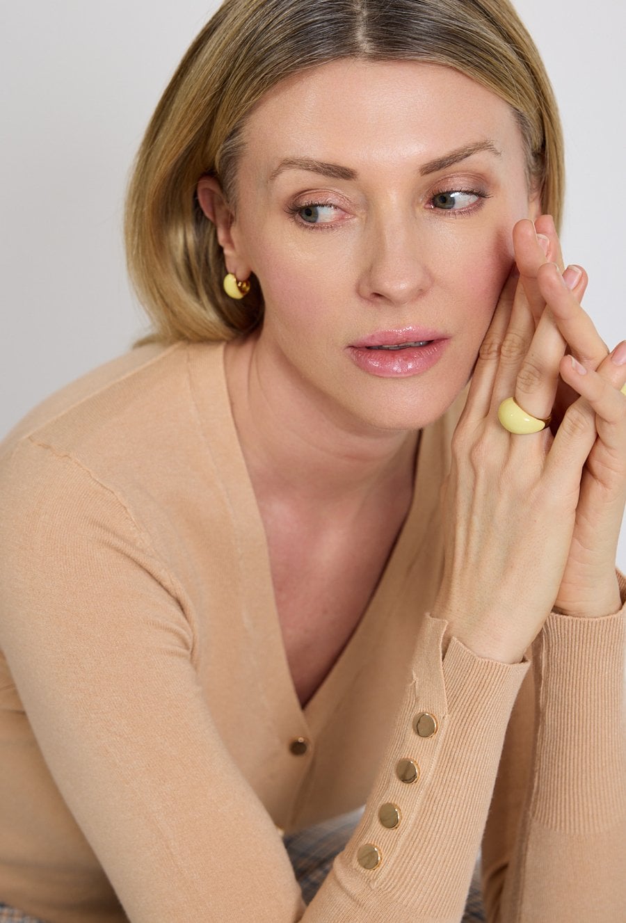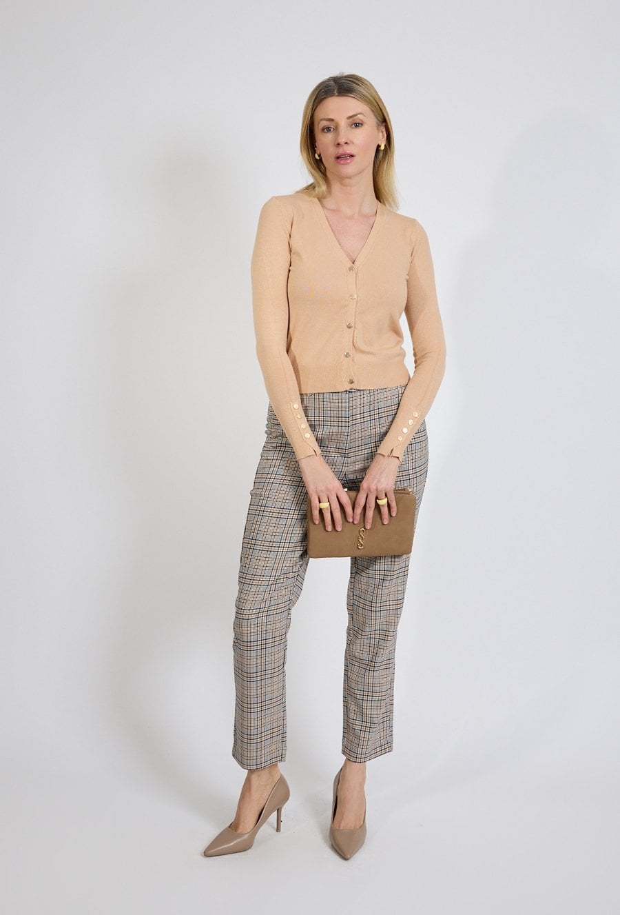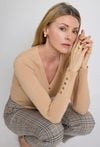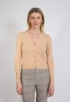 Beżowy kardigan damski z dekoltem V i guzikami