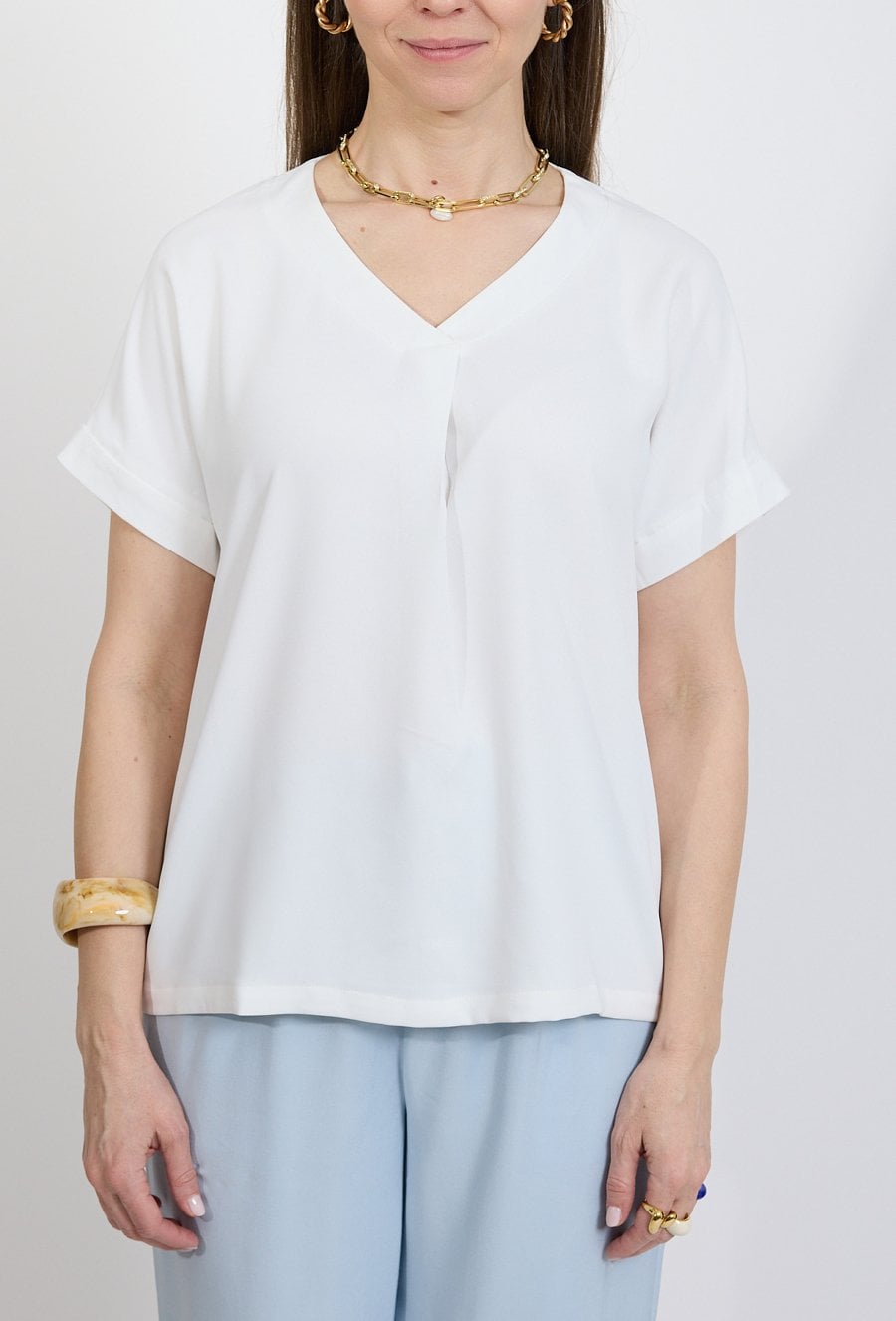 Biała bluzka damska z dekoltem V