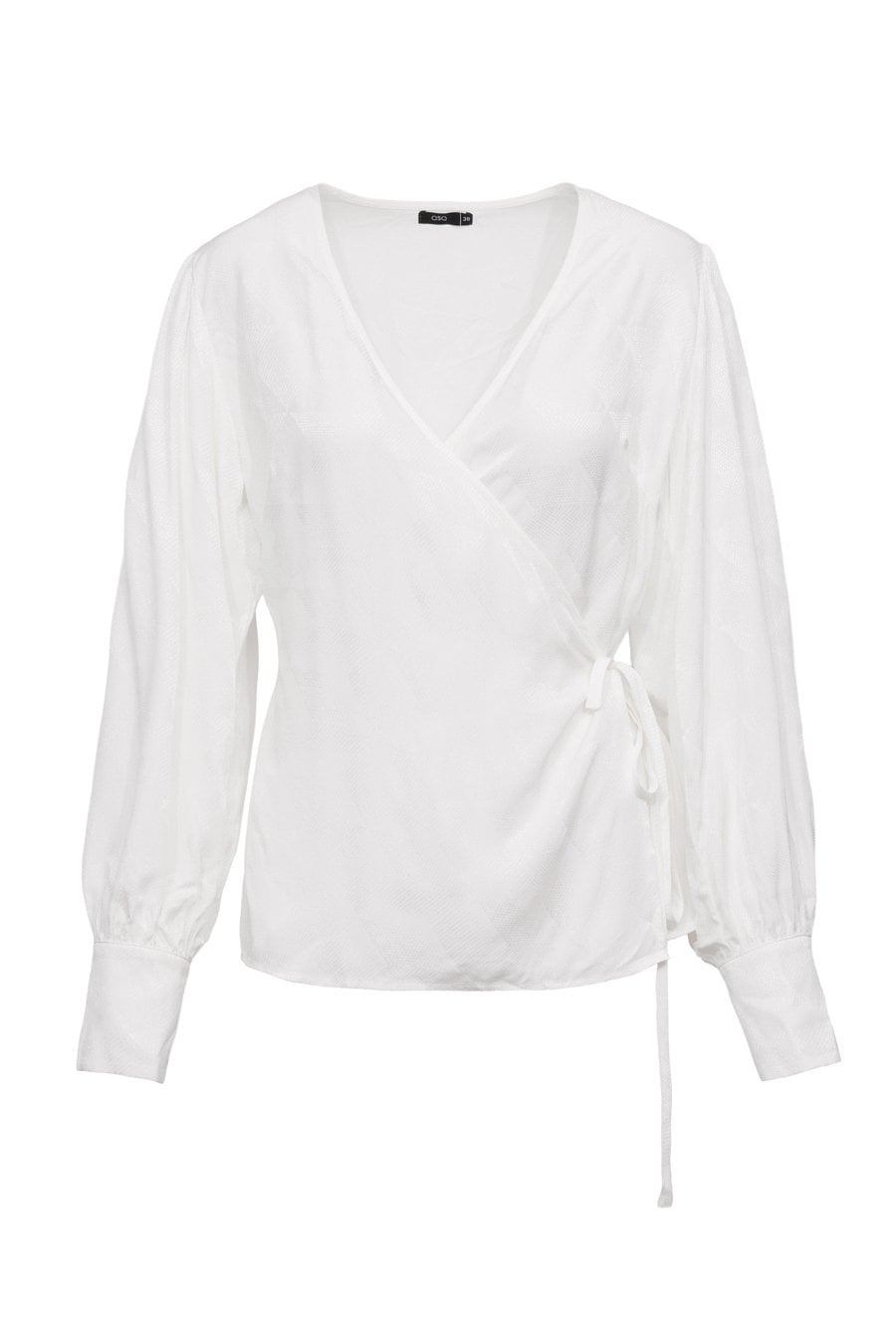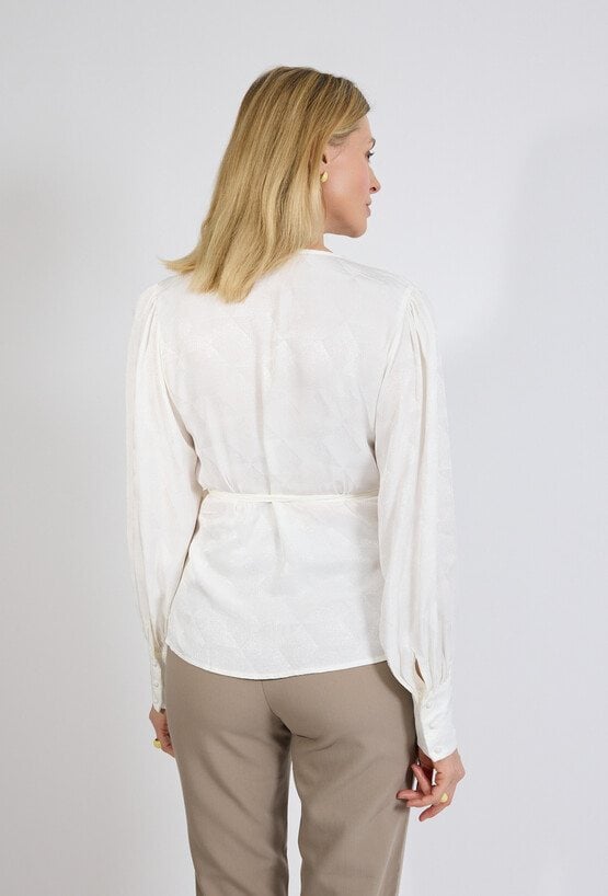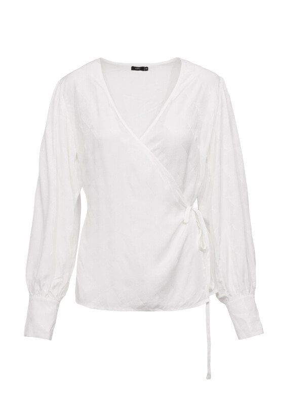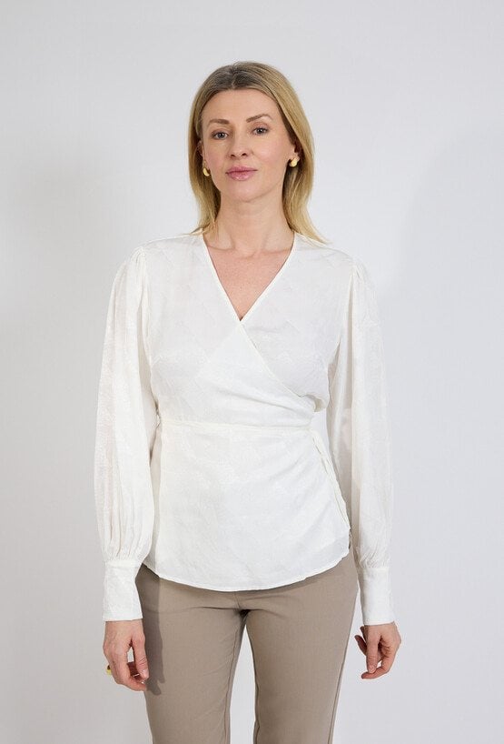 Biała bluzka kopertowa damska elegancka z długim rękawem