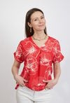 Czerwona bluzka damska w kwiaty