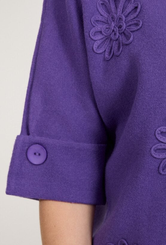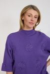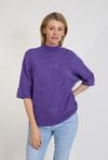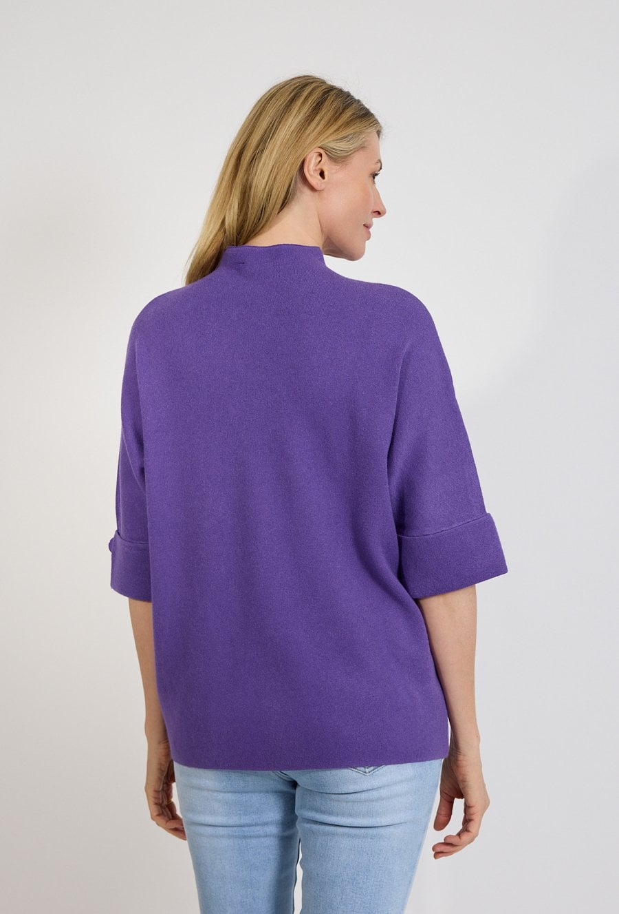 Fioletowy sweter damski w luźnym kroju to bezpieczny wybór na sezon przejściowy i chłodniejsze wieczory. Prosty tył i obniżona linia ramion dają efekt swobodnej elegancji, a rękaw 3/4 z podwinięciem buduje nowoczesną sylwetkę. Model świetnie wygląda z jasnym denimem, klasycznymi cygaretkami oraz spódnicą midi. Postaw na styl smart casual: dodaj mokasyny lub botki oraz minimalistyczną biżuterię. Sweter sprawdzi się w biurze, na spotkaniu oraz w podróży, bo nie wymaga skomplikowanej stylizacji.