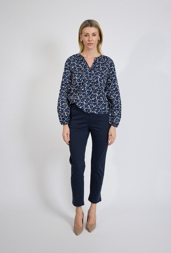 Granatowa bluzka damska w print z długim rękawem