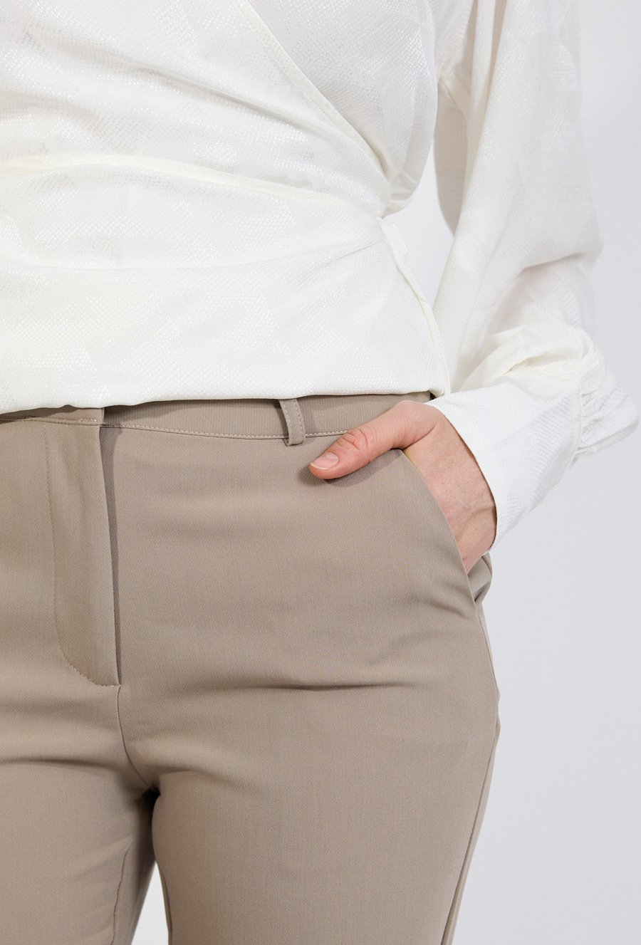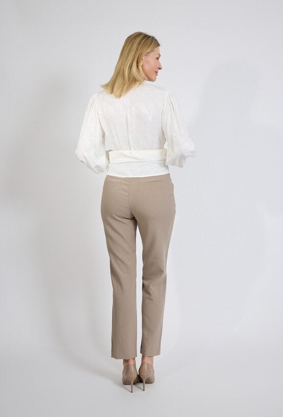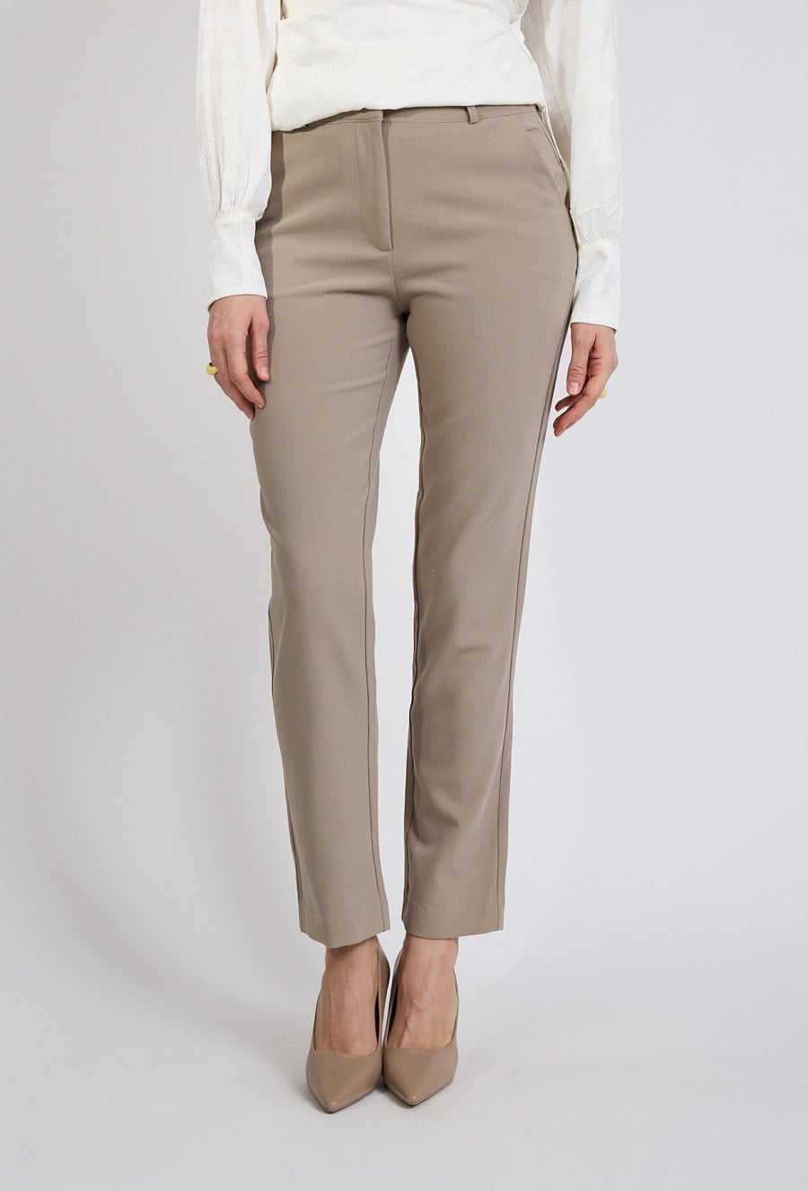 Beżowe spodnie eleganckie QUIOSQUE to ponadczasowy element garderoby. Dopasowany krój podkreśla sylwetkę, a neutralny kolor ułatwia tworzenie wielu stylizacji. Model sprawdzi się zarówno w biurze, jak i podczas spotkań czy uroczystości.
