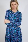 Granatowa sukienka wzorzysta z kołnierzykiem