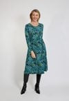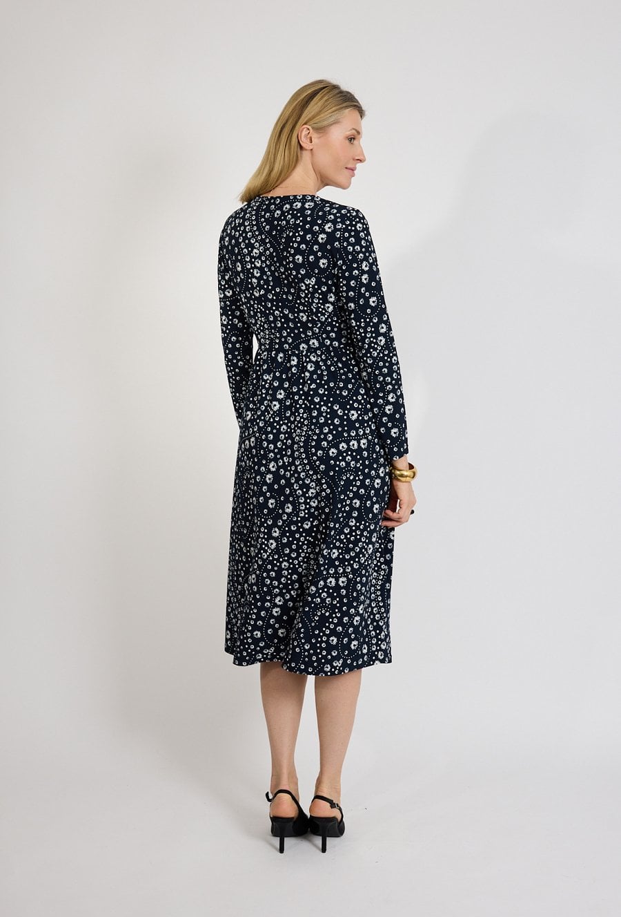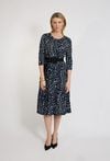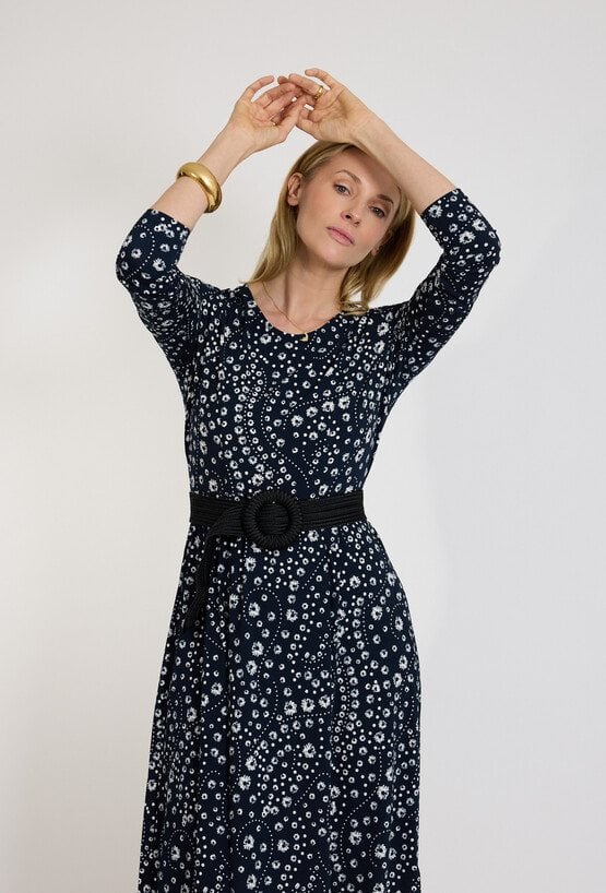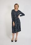 Granatowa sukienka damska we wzór z kołnierzykiem