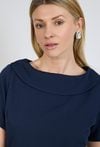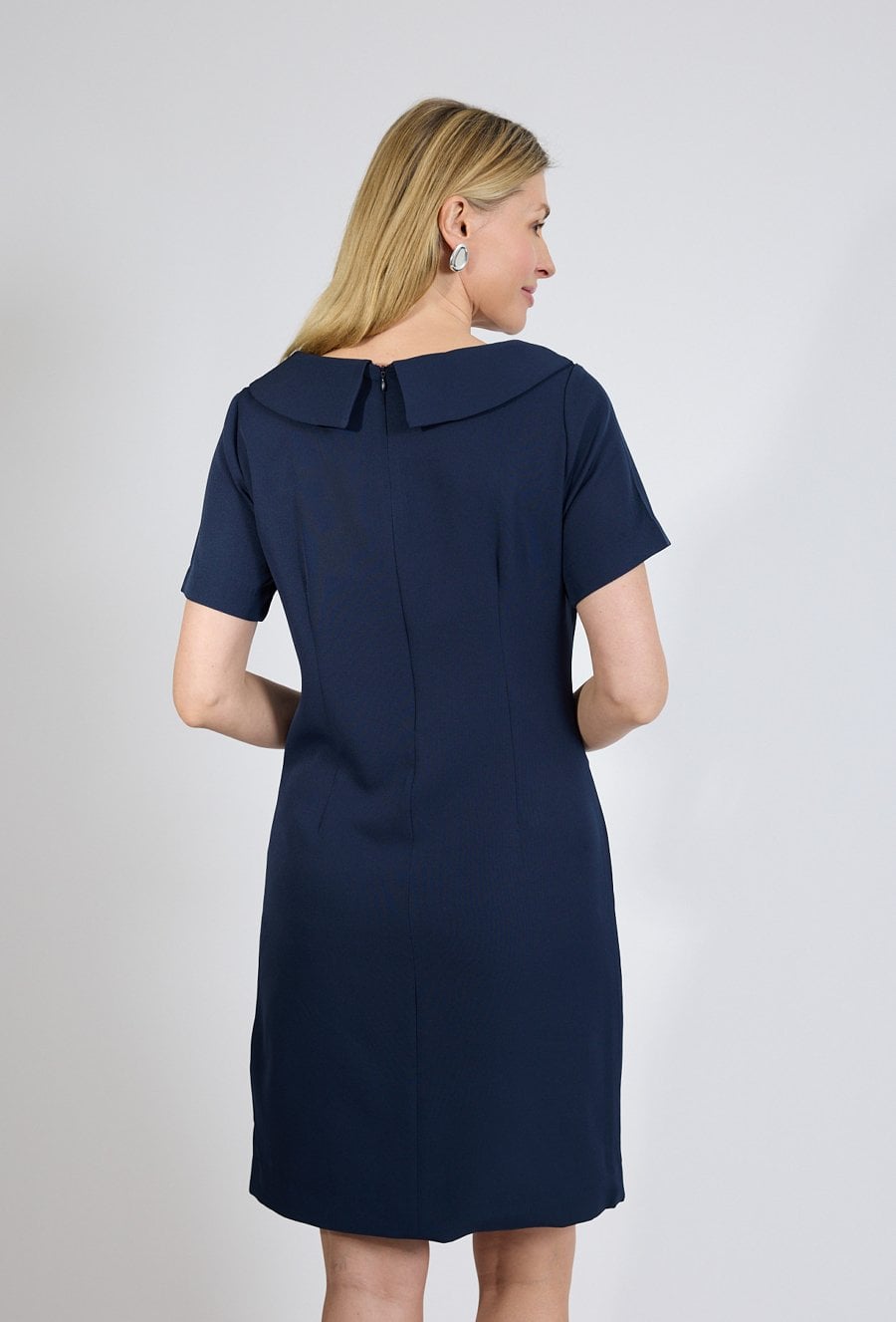 Granatowa sukienka o eleganckim, minimalistycznym kroju to ponadczasowa propozycja dla kobiet ceniących klasykę i wygodę. Prosty fason pięknie układa się na sylwetce, podkreślając kobiecy charakter stylizacji, a subtelnie wyprofilowany dekolt dodaje całości szyku.
