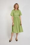 Zielona sukienka midi z paskiem i krótkim rękawem