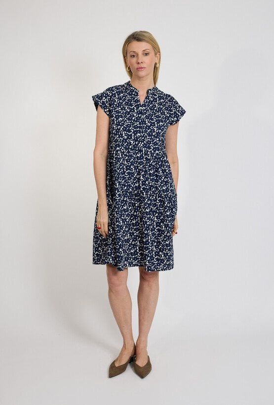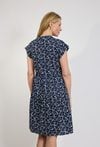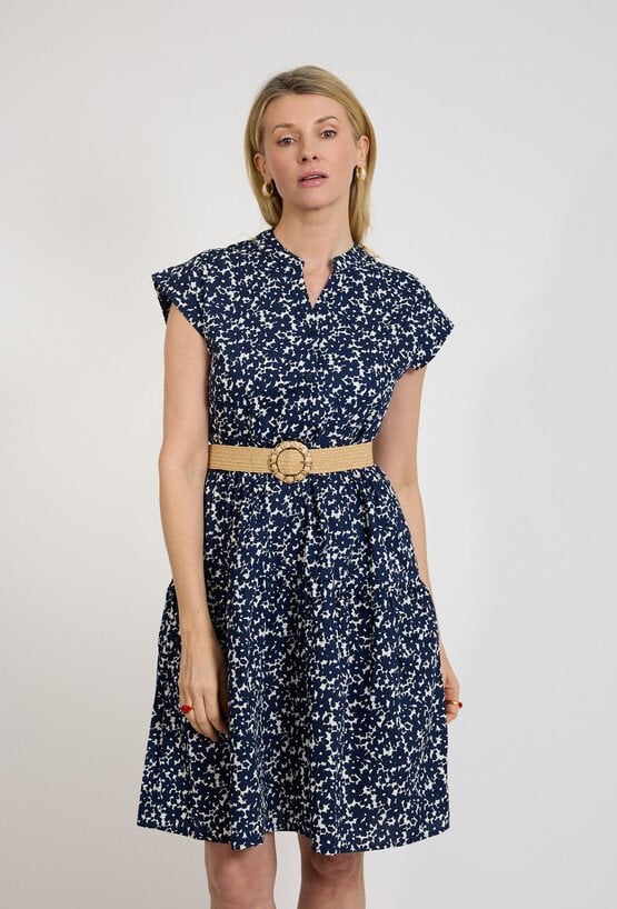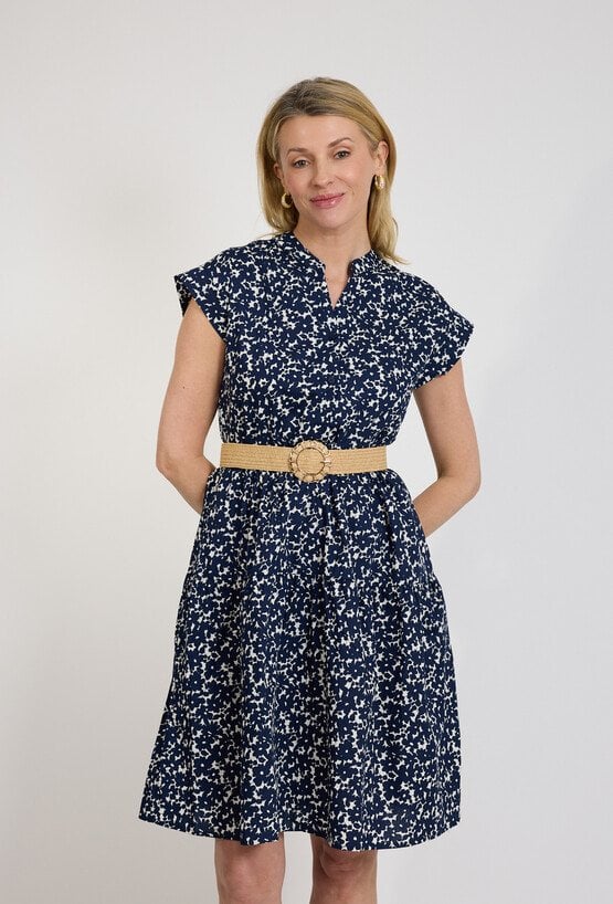 Granatowa sukienka w kwiatowy wzór z paskiem