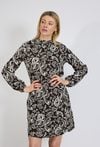Granatowa sukienka damska we wzór z kołnierzykiem