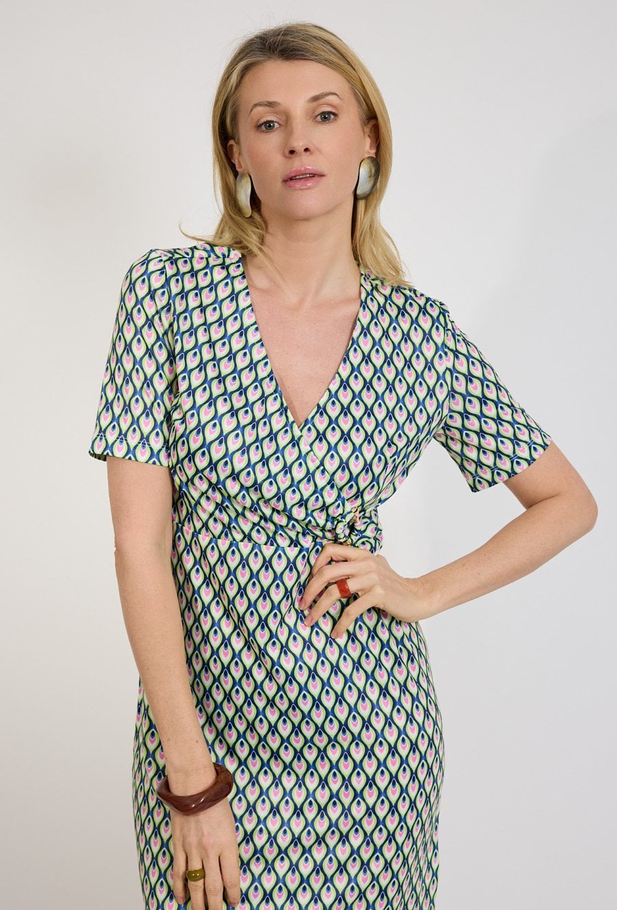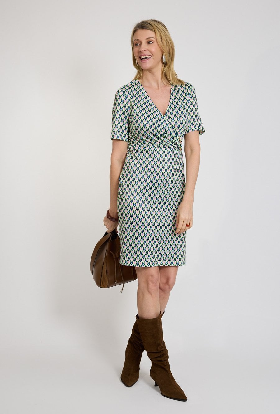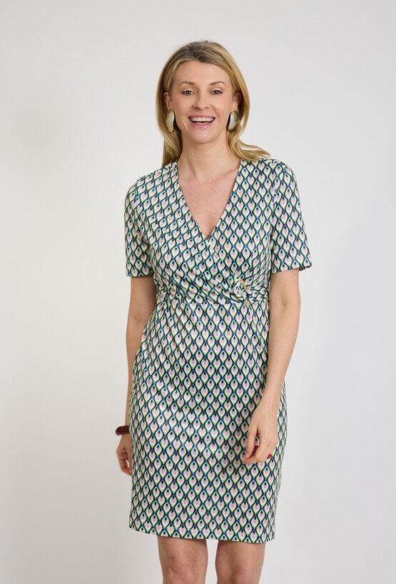 Sukienka damska kopertowa z geometrycznym wzorem