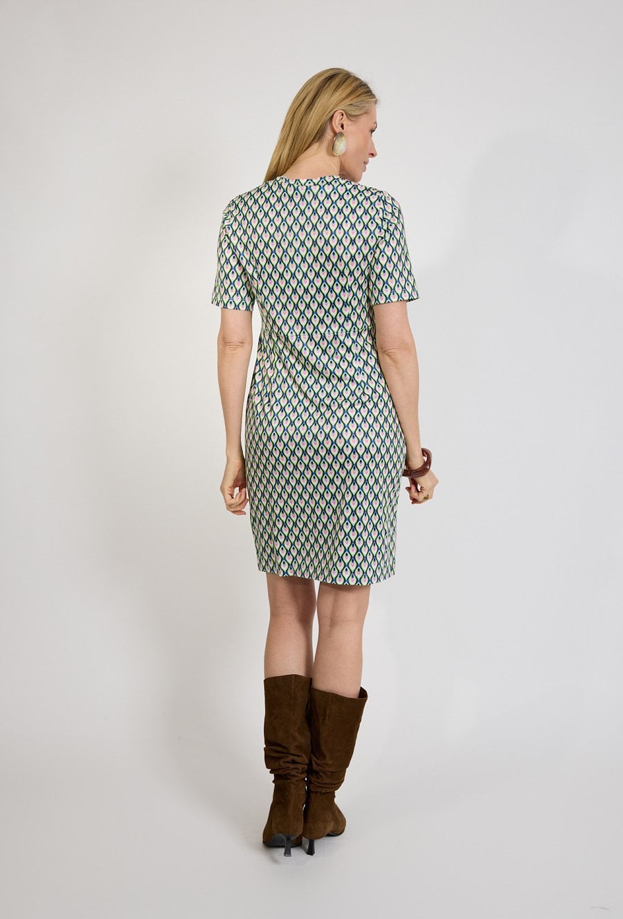 Sukienka damska we wzór geometryczny z kołnierzykiem