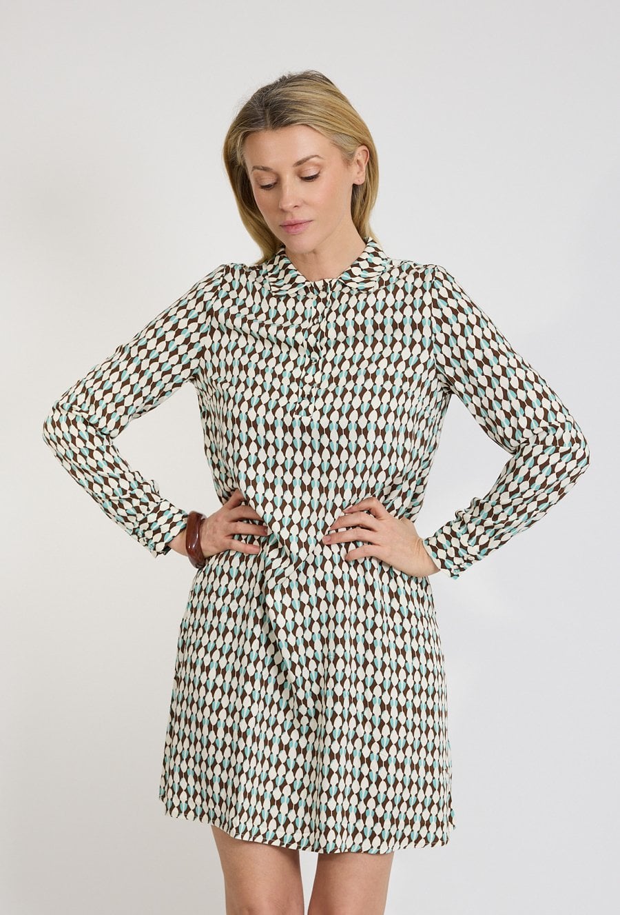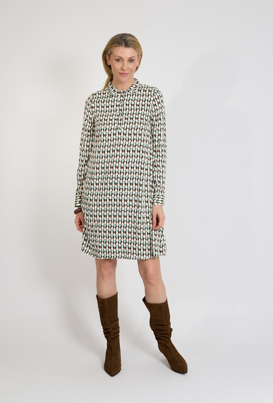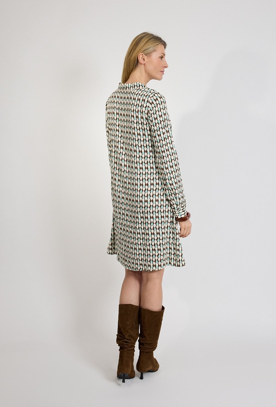 Sukienka damska we wzór geometryczny z kołnierzykiem