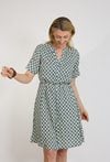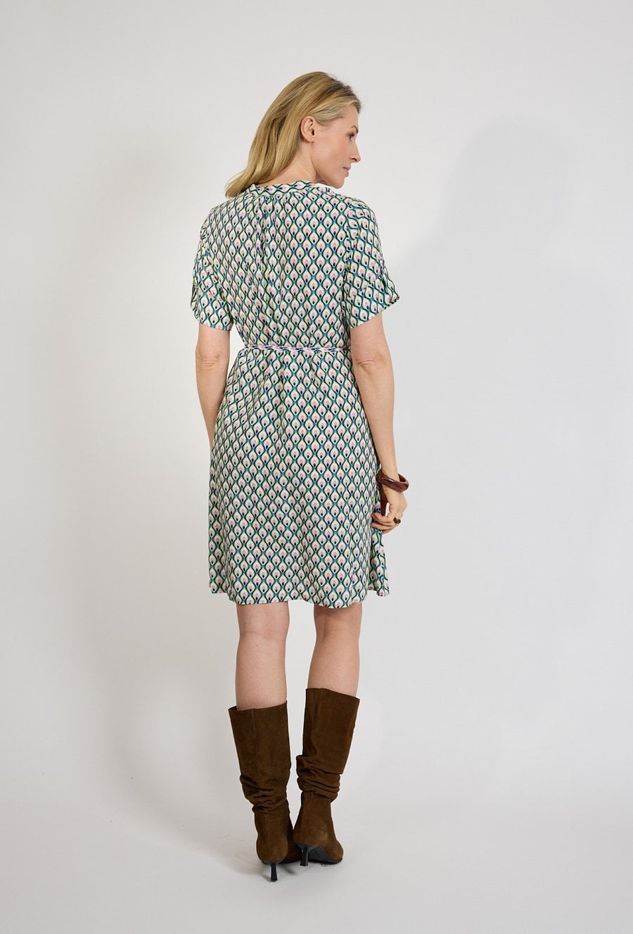 Sukienka mini we wzór geometryczny z wiązaniem w talii