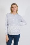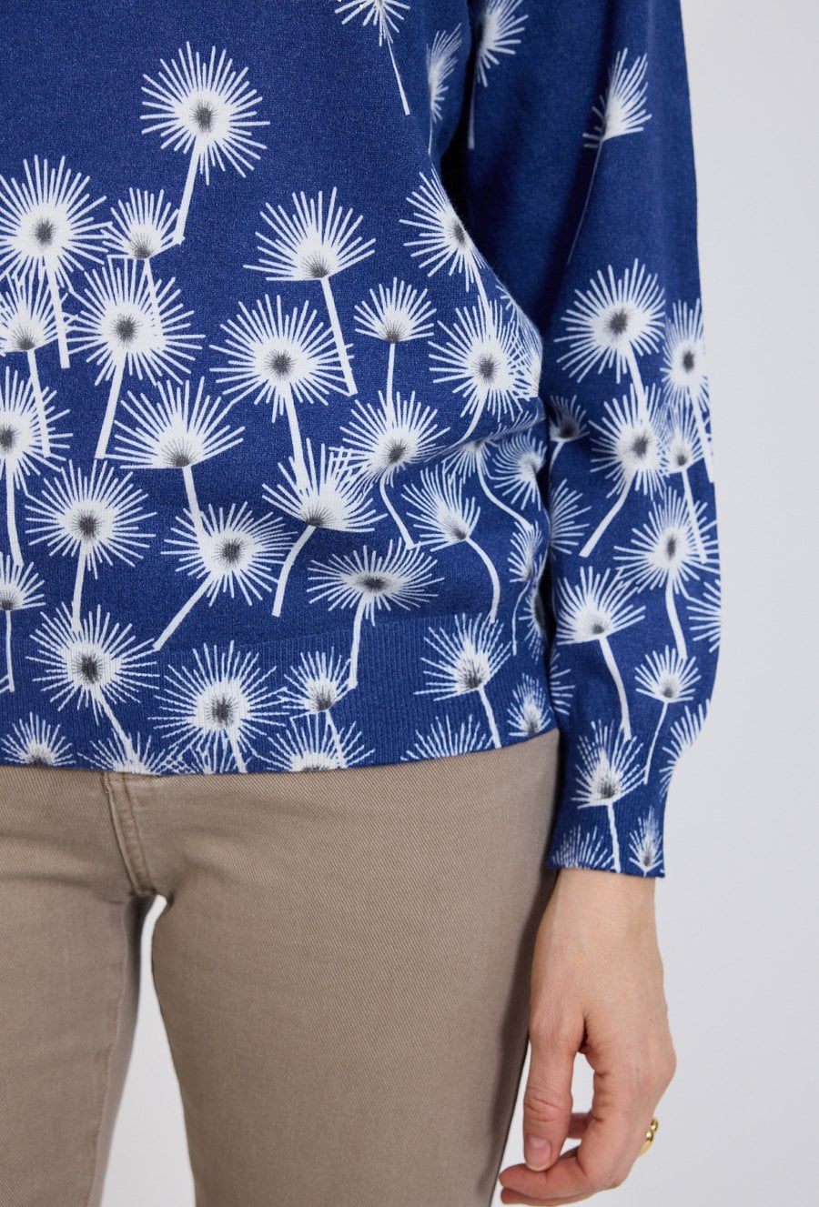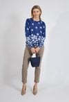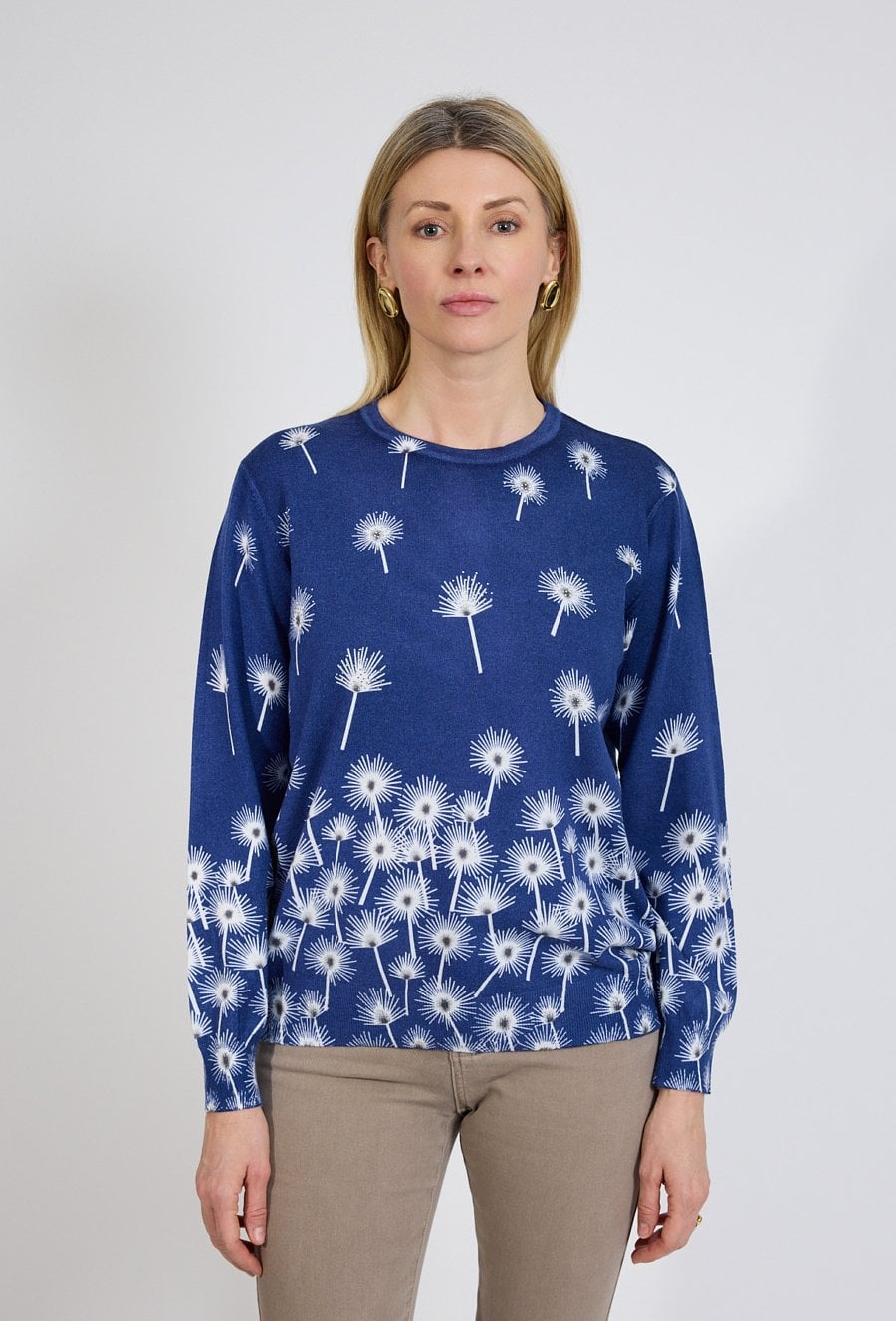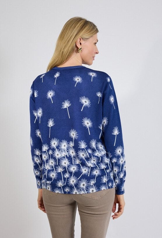 Granatowy sweter damski z subtelnym roślinnym wzorem to połączenie komfortu i eleganckiego wyglądu. Delikatny motyw kwiatowy nadaje całości kobiecego charakteru, a klasyczny fason sprawia, że model pasuje zarówno do stylizacji codziennych, jak i bardziej uporządkowanych zestawów do pracy. Lekka, przyjemna w dotyku dzianina zapewnia wygodę noszenia przez cały dzień. Sweter dobrze układa się na sylwetce i nie krępuje ruchów, dzięki czemu świetnie sprawdza się w sezonie przejściowym oraz jako warstwa pod marynarkę lub płaszcz. Granatowy kolor jest uniwersalny i łatwy w stylizacji. Model doskonale komponuje się ze spodniami materiałowymi, jeansami oraz spódnicami, tworząc zestawy smart casual i miejskie. To praktyczny element garderoby, który łączy funkcjonalność z kobiecym stylem.