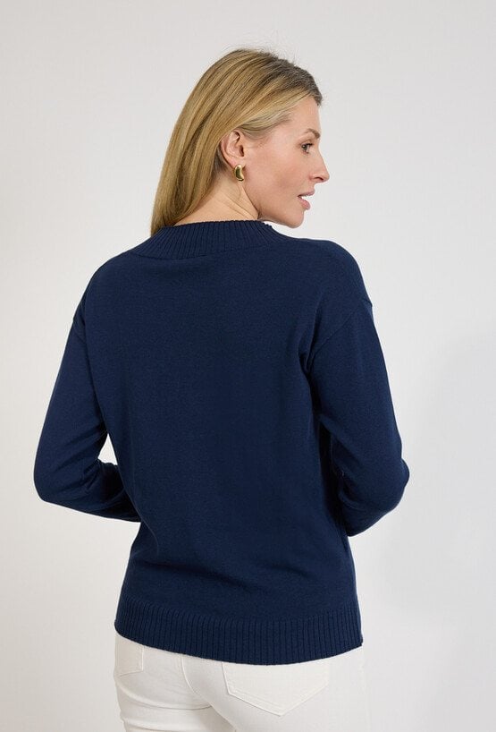 Granatowy sweter damski z dekoltem V