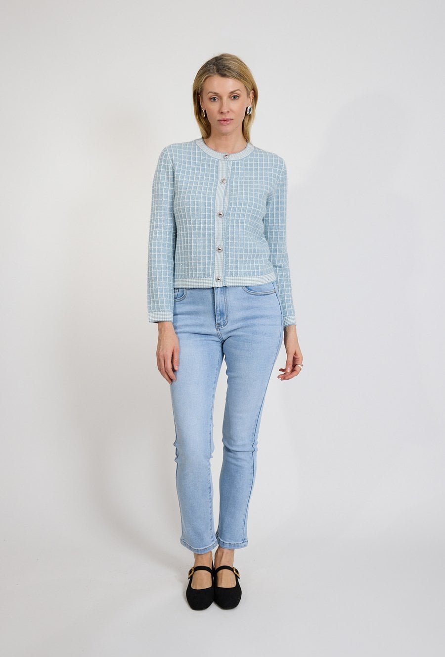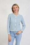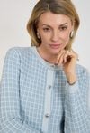 Niebieski kardigan damski w kratkę zapinany na guziki