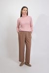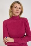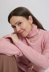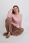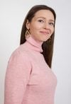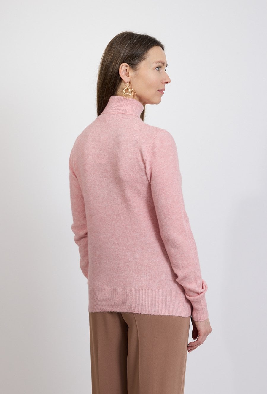 Klasyczny sweter damski z golfem w subtelnym odcieniu pudrowego różu to ponadczasowy element kobiecej garderoby. Miękka dzianina zapewnia komfort noszenia, a dopasowany krój pięknie podkreśla sylwetkę. Golf delikatnie otula szyję, dzięki czemu sweter świetnie sprawdzi się w chłodniejsze dni. Minimalistyczny fason sprawia, że model pasuje zarówno do eleganckich stylizacji z marynarką, jak i do codziennych zestawów z jeansami czy spódnicą. To uniwersalna propozycja, która sprawdzi się w pracy, na spotkaniu czy podczas weekendowego wyjścia. Modelka ma 172 cm wzrostu i nosi rozmiar 38/M