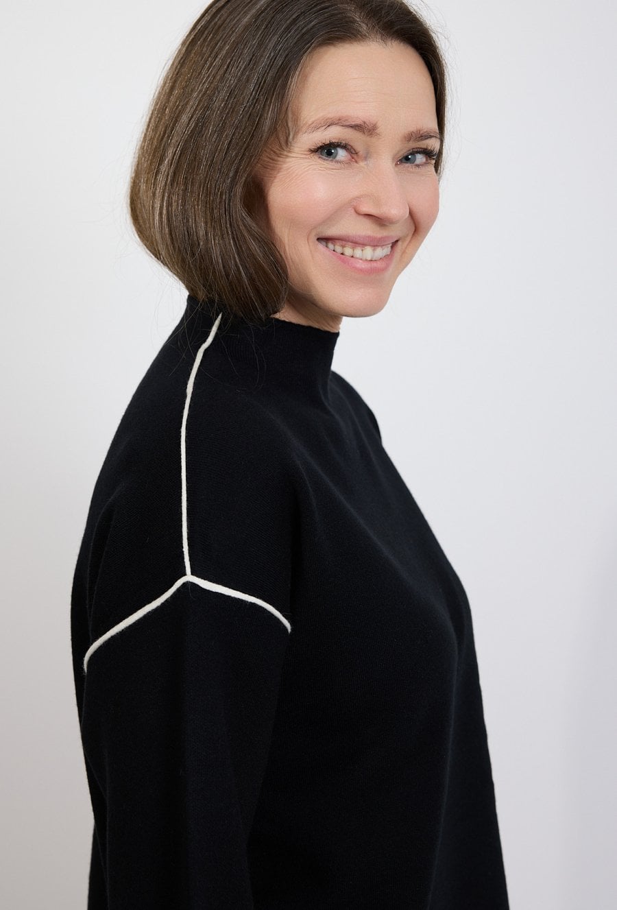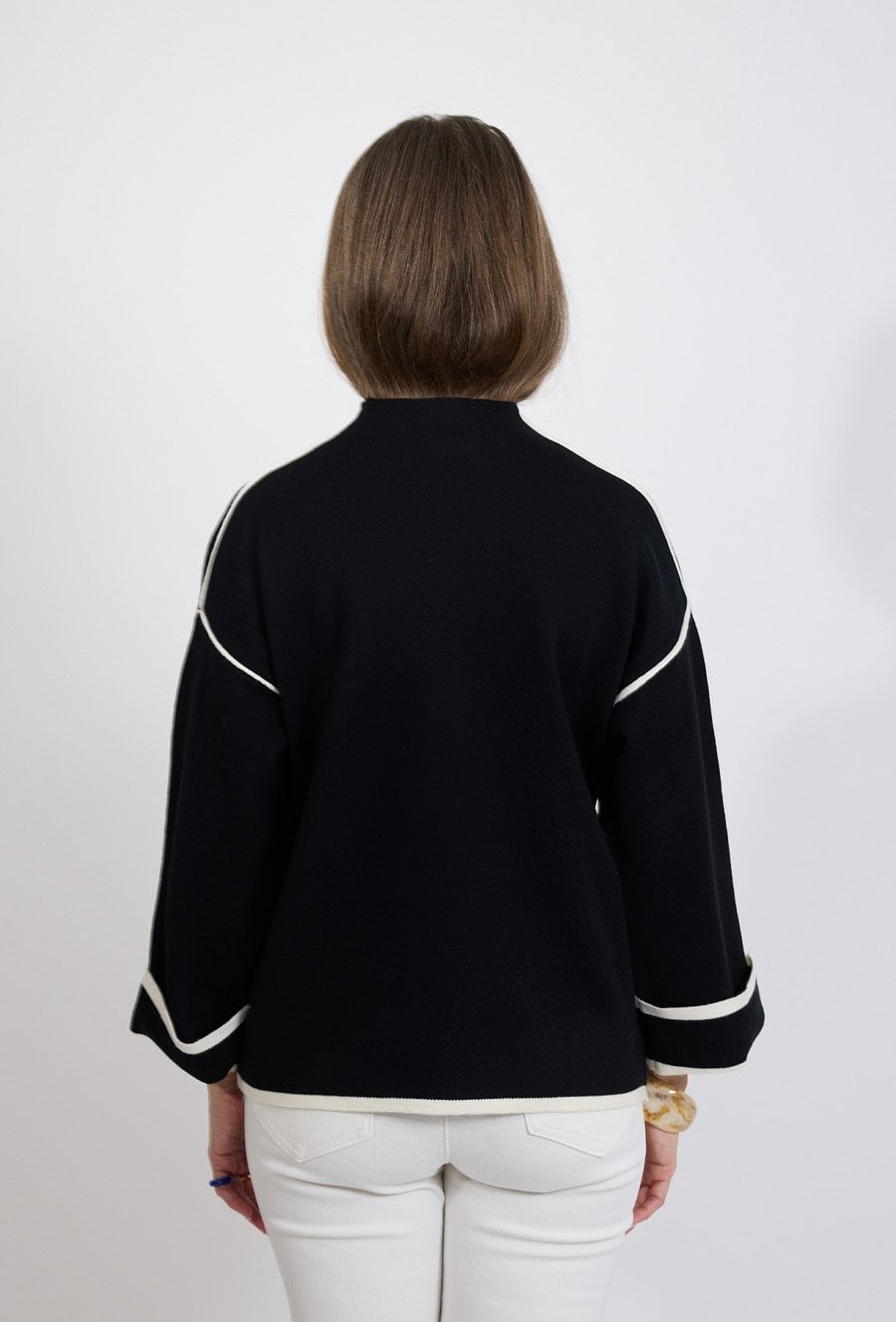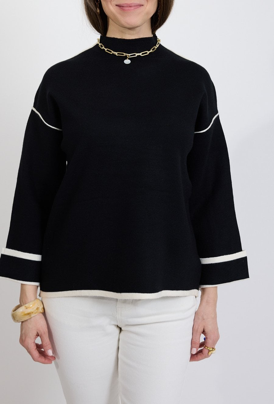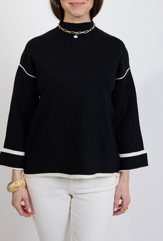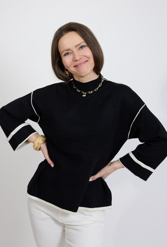Sweter damski czarny z kontrastowym wykończeniem