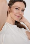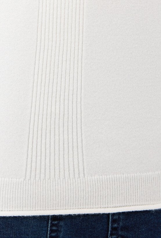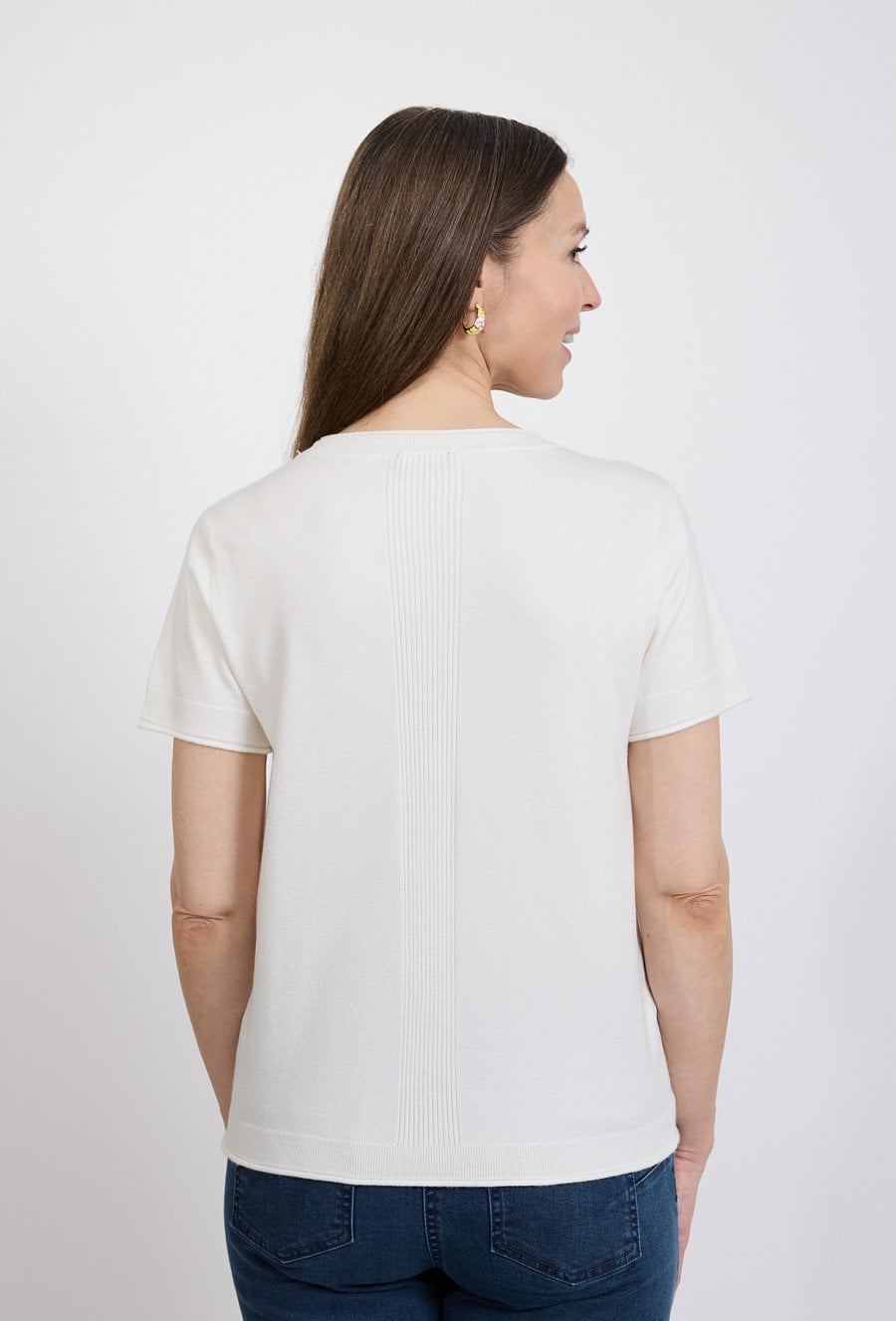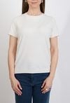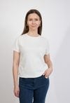 Klasyczny T-shirt damski w kolorze ecru to uniwersalny element garderoby, który sprawdzi się w wielu codziennych stylizacjach. Minimalistyczny fason i ponadczasowy kolor sprawiają, że koszulka doskonale komponuje się zarówno z jeansami, jak i eleganckimi spodniami czy spódnicą. Model wykonany z przyjemnego w dotyku materiału zapewnia komfort noszenia przez cały dzień. Prosty krój pięknie układa się na sylwetce, podkreślając naturalny charakter stylizacji. To idealna baza do stylizacji casual i smart casual. Modelka ma 172 cm wzrostu i nosi rozmiar 38/M