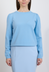 Elegancki sweter damski w jasnoniebieskim odcieniu to stylowa propozycja do codziennych i bardziej eleganckich stylizacji. Model wykonany z fakturowanej dzianiny wyróżnia się subtelną strukturą materiału, która nadaje całości wyjątkowego charakteru. Delikatnie podkreślone ramiona oraz klasyczny krój sprawiają, że sweter pięknie układa się na sylwetce. Jasny kolor dodaje stylizacji lekkości i świeżości. Sweter doskonale komponuje się zarówno z elegancką spódnicą, jak i spodniami, tworząc kobiecą i ponadczasową stylizację. Modelka ma 172 cm wzrostu i nosi rozmiar 38/M