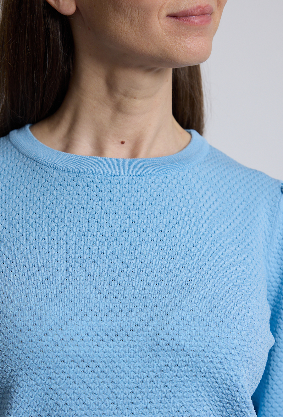 Sweter damski jasnoniebieski z fakturowanej dzianiny