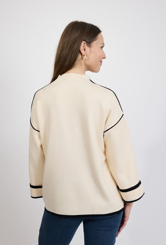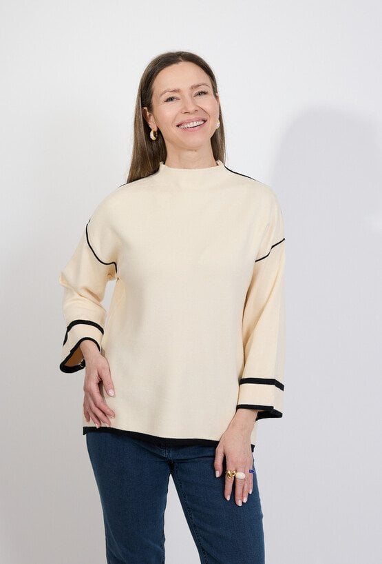 Sweter damski kremowy z kontrastowym wykończeniem