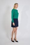 Zielony sweter damski o subtelnej fakturze to połączenie klasyki i nowoczesnego stylu. Wyrazisty kolor przyciąga uwagę, a minimalistyczny fason sprawia, że model pozostaje elegancki i ponadczasowy. Model doskonale sprawdzi się w stylizacjach do pracy, smart casual oraz na co dzień. Można go łączyć ze spodniami materiałowymi, spódnicami lub jeansami. To praktyczny element garderoby kapsułowej, który łączy wygodę z elegancją. Modelka ma 179 cm wzrostu i nosi rozmiar 38/M
