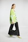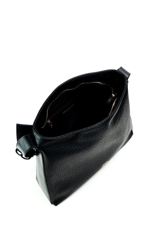 Duża torba damska typu worek o wymiarach 38 cm x 29 cm x 7 cm. Pojemna, jednokomorowa, z dodatkową kieszonką wewnątrz oraz jedną z tyłu, idealną na drobiazgi. Torba zapinana od góry na suwak, zapewniając bezpieczeństwo zawartości. Zawieszona na regulowanej rączce, która gwarantuje wygodę noszenia. Idealna na co dzień Torbę należy przechowywać w dołączonym woreczku