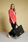 Torba damska o wymiarach 48 cm x 36 cm x 5 cm, idealna na co dzień, łącząca funkcjonalność z wygodą. Jednokomorowa, wyposażona w dodatkowe kieszonki na drobiazgi, które pomagają w organizacji. Można ją nosić na rączkach lub na regulowanym pasku dołączonym do zestawu. Praktyczne kieszonki z przodu i z tyłu zapewniają szybki dostęp do najpotrzebniejszych rzeczy. Torbę należy przechowywać w dołączonym woreczku
