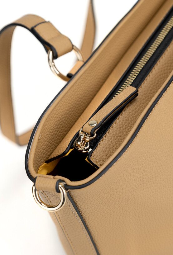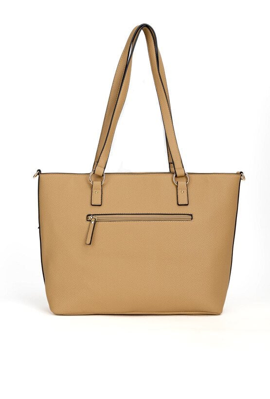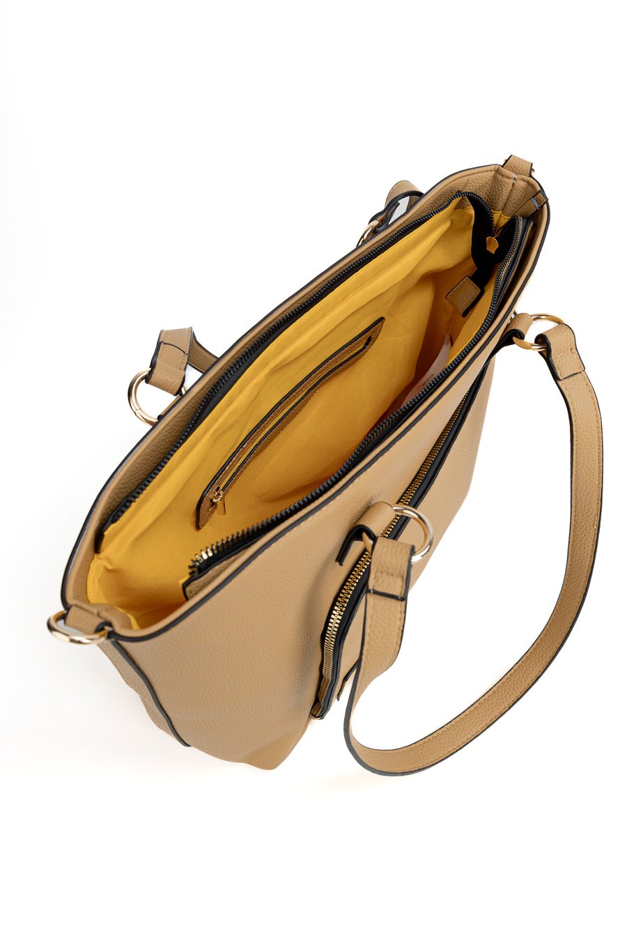 Pojemna torebka damska typu shopper o wymiarach 43 cm x 28,5 cm x 10 cm, idealna do codziennych stylizacji. Model jednokomorowy z praktycznymi kieszonkami na drobiazgi wewnątrz oraz dodatkowymi kieszeniami z przodu i z tyłu. Torba zawieszona na wygodnych rączkach, a w zestawie znajduje się również regulowany pasek, który umożliwia noszenie jej na ramieniu. Torbę należy przechowywać w dołączonym woreczku.
