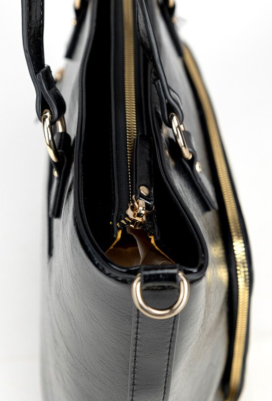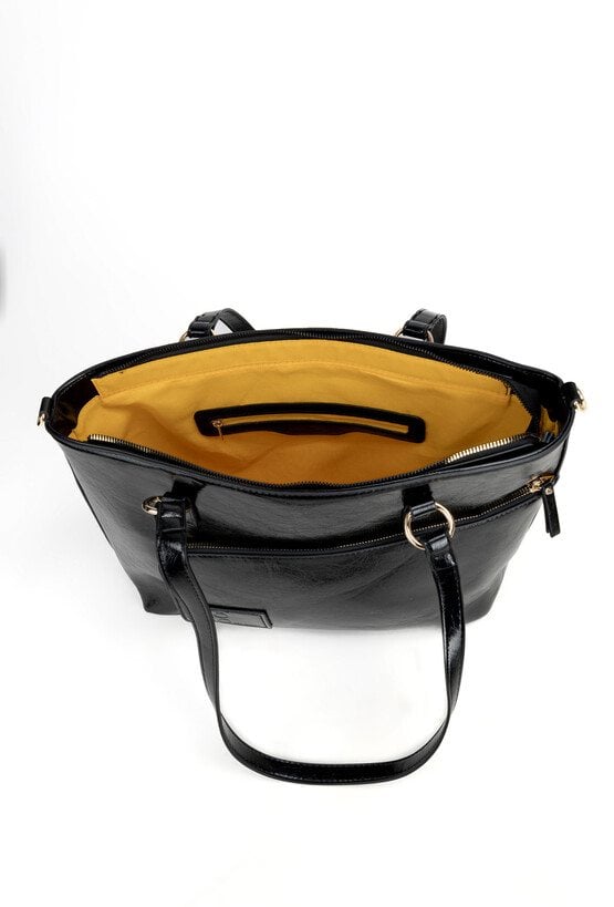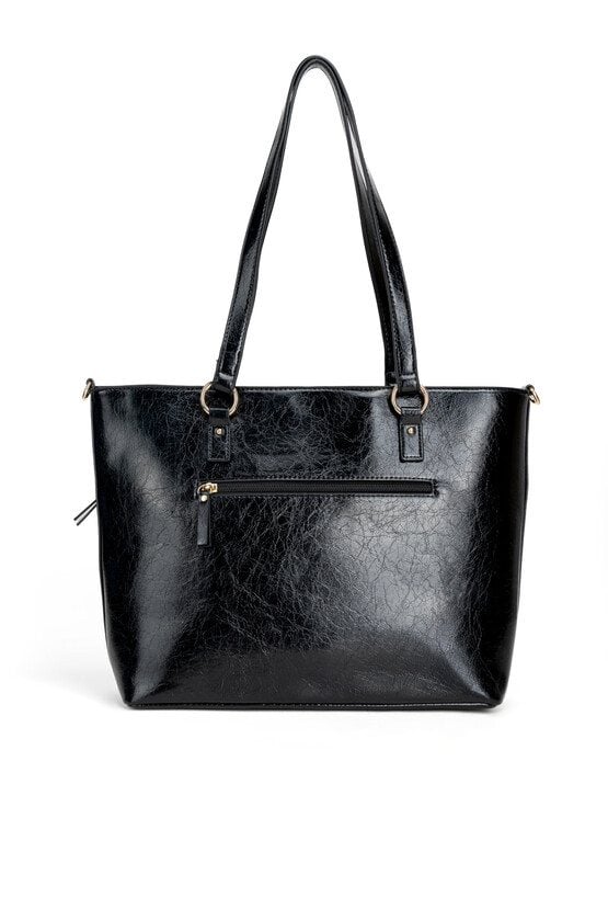 Pojemna torebka damska typu shopper o wymiarach 43 cm x 28,5 cm x 10 cm, idealna do codziennych stylizacji. Model jednokomorowy z praktycznymi kieszonkami na drobiazgi wewnątrz oraz dodatkowymi kieszeniami z przodu i z tyłu. Torba zawieszona na wygodnych rączkach, a w zestawie znajduje się również regulowany pasek, który umożliwia noszenie jej na ramieniu. Torbę należy przechowywać w dołączonym woreczku.