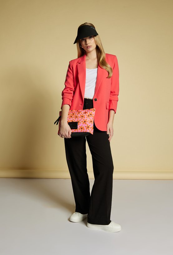 Kosmetyczka damska o wymiarach 31 cm x 22 cm x 8 cm, łącząca funkcjonalność z estetyką. Posiada jedną przestronną komorę, z dodatkową kieszonką w środku oraz praktyczną kieszonką z przodu, zapinaną na suwak. Z tyłu znajdują się otwarte kieszonki, które zapewniają łatwy dostęp do drobiazgów.