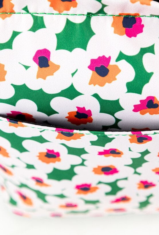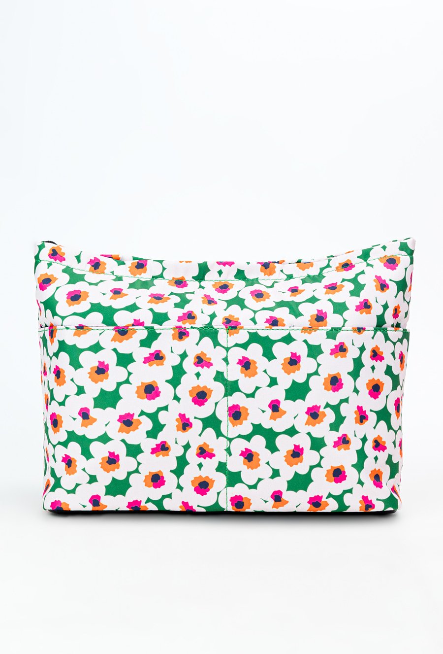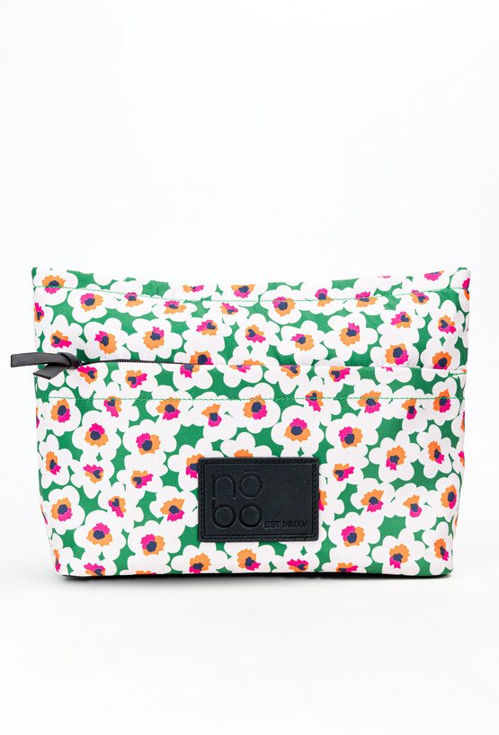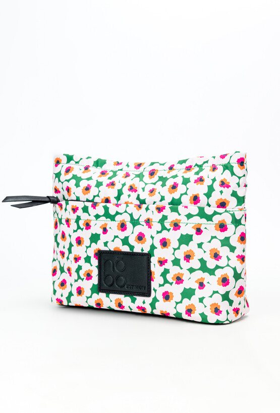 Kosmetyczka damska o wymiarach 31 cm x 22 cm x 8 cm, łącząca funkcjonalność z estetyką. Posiada jedną przestronną komorę, z dodatkową kieszonką w środku oraz praktyczną kieszonką z przodu, zapinaną na suwak. Z tyłu znajdują się otwarte kieszonki, które zapewniają łatwy dostęp do drobiazgów.