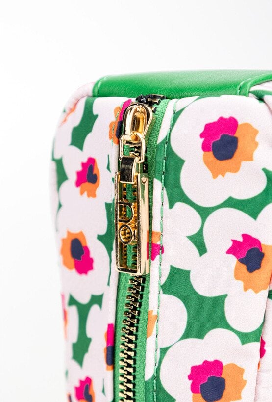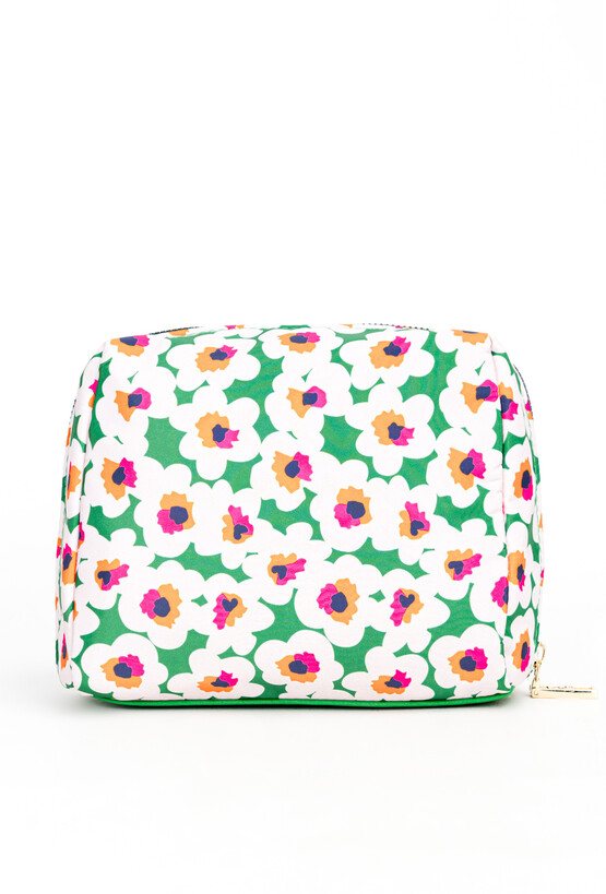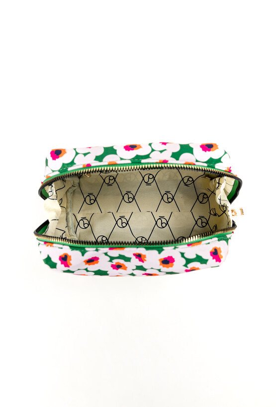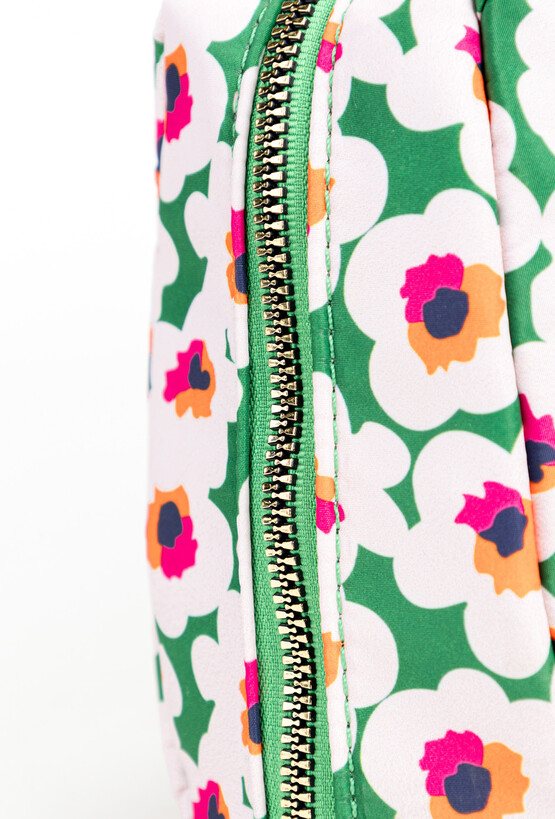 Mała kosmetyczka damska z kwiatowym, wiosennym wzorem, która wprowadza radosny akcent do Twoich akcesoriów. Kosmetyczka jest jednokomorowa, z dodatkowymi kieszonkami, które pomogą uporządkować drobne przedmioty. Główna komora jest zamykana, co zapewnia bezpieczeństwo Twoim kosmetykom, a kompaktowy rozmiar sprawia, że łatwo przeniesiesz ją do innej torebki lub zabierzesz na wyjazd. Idealny organizer, który sprawdzi się zarówno w codziennym użytkowaniu w domu, jak i podczas podróży. Kosmetyczka o wymiarach: 21 cm x 18 cm x 9 cm.