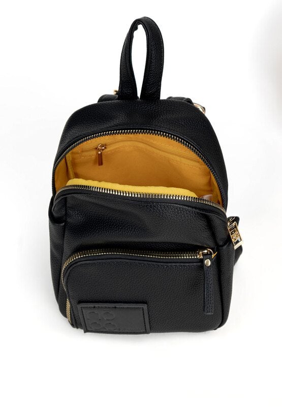 Mały plecak damski, idealny na co dzień. Jednokomorowy model, wyposażony w wygodną rączkę oraz regulowane paski, zapewniające komfort noszenia. Z przodu, z tyłu oraz po bokach znajdują się dodatkowe kieszonki, idealne na drobiazgi i niezbędne akcesoria. Uniwersalny i praktyczny dodatek do codziennych stylizacji. Plecak należy przechowywać w dołączonym woreczku. Wymiary: 18 cm x 22 cm x 11 cm .