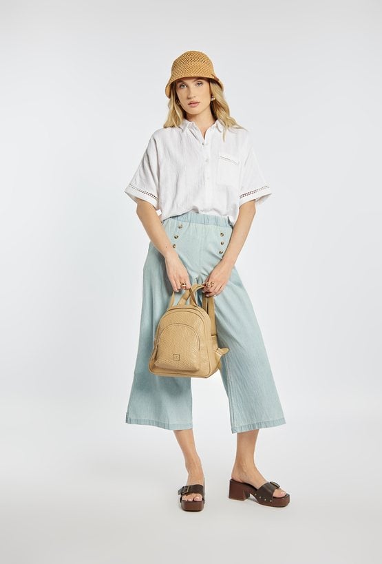 Plecak damski z delikatnym zwierzęcym wzorem. Plecak posiada jedną pojemną komorę oraz dodatkowe kieszonki wewnątrz, idealne na drobiazgi. Z przodu znajduje się praktyczna kieszeń zapinana na suwak, świetna na najpotrzebniejsze rzeczy. Perfekcyjny wybór na co dzień! Plecak należy przechowywać w dołączonym woreczku. Wymiary: 24 cm x 27 cm x 8,5 cm.