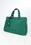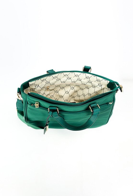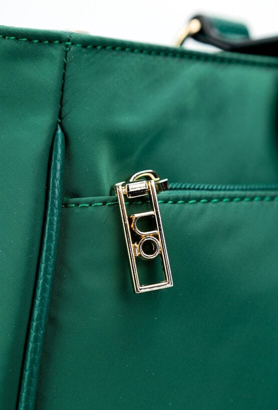 Pojemna torba damska o wymiarach 40 cm x 27,5 cm x 10 cm. Model jednokomorowy, wyposażony w dodatkową kieszonkę na laptopa, zapewniającą wygodę i funkcjonalność. Zarówno z przodu, jak i z tyłu znajduje się zasuwana kieszonka na drobiazgi. Torba zawieszona na rączkach, a w zestawie dołączony jest wzorzysty pasek, który dodaje stylowego akcentu. Idealna na co dzień i do pracy. Torbę należy przechowywać w dołączonym woreczku.