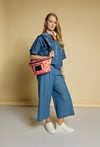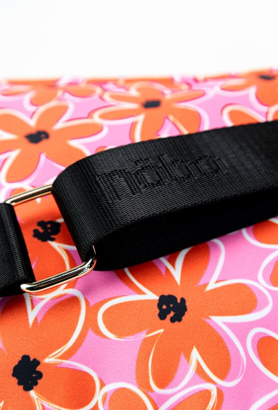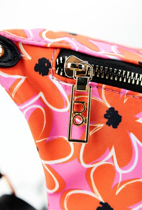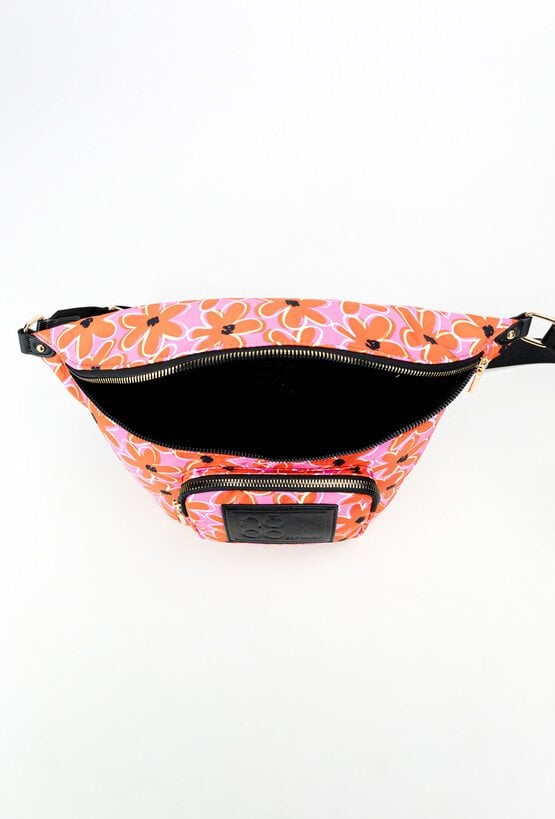 Wzorzysta, sportowa torebka damska typu nerka o wymiarach 35 cm x 16 cm x 9 cm. Jednokomorowa, z dodatkową kieszonką w środku oraz jedną na froncie. Intensywne kolory wzoru doskonale uzupełniają wiosenne stylizacje, nadając im energii i charakteru. Torbę należy przechowywać w dołączonym woreczku.
