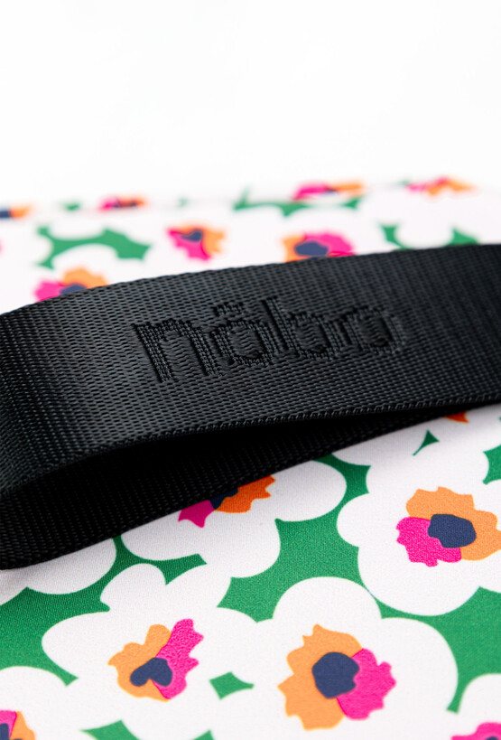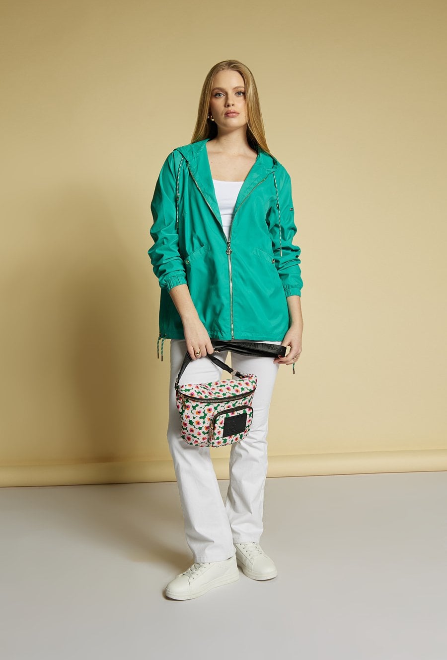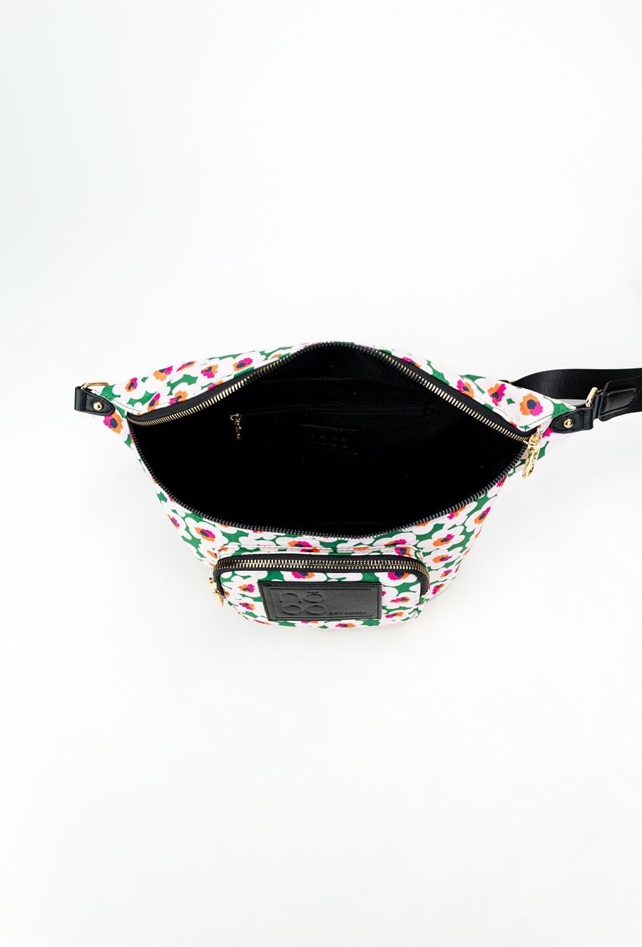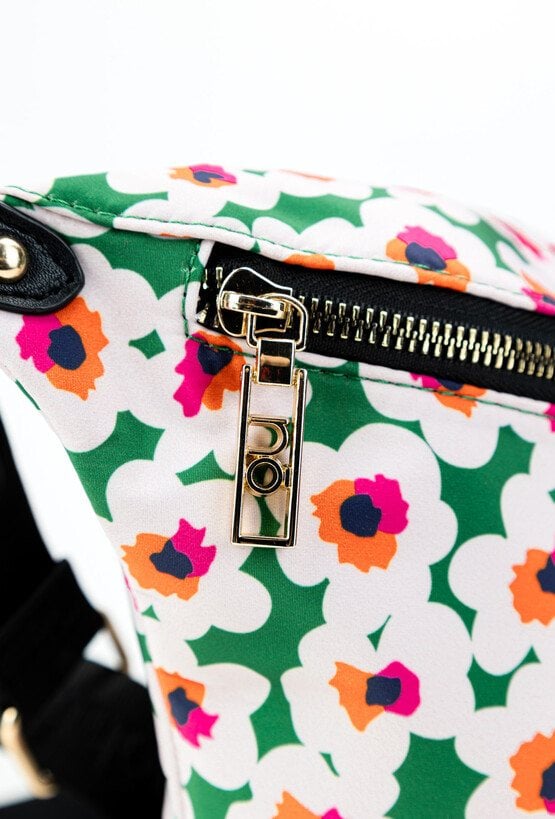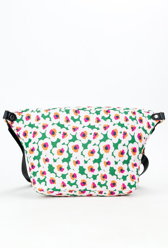 Wzorzysta, sportowa torebka damska typu nerka o wymiarach 35 cm x 16 cm x 9 cm. Jednokomorowa, z dodatkową kieszonką w środku oraz jedną na froncie. Intensywne kolory wzoru doskonale uzupełniają wiosenne stylizacje, nadając im energii i charakteru. Torbę należy przechowywać w dołączonym woreczku.