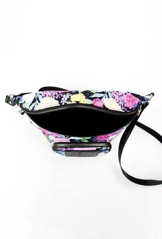 Wzorzysta, sportowa torebka damska typu nerka o wymiarach 35 cm x 16 cm x 9 cm. Jednokomorowa, z dodatkową kieszonką w środku oraz jedną na froncie. Intensywne kolory wzoru doskonale uzupełniają wiosenne stylizacje, nadając im energii i charakteru. Torbę należy przechowywać w dołączonym woreczku.