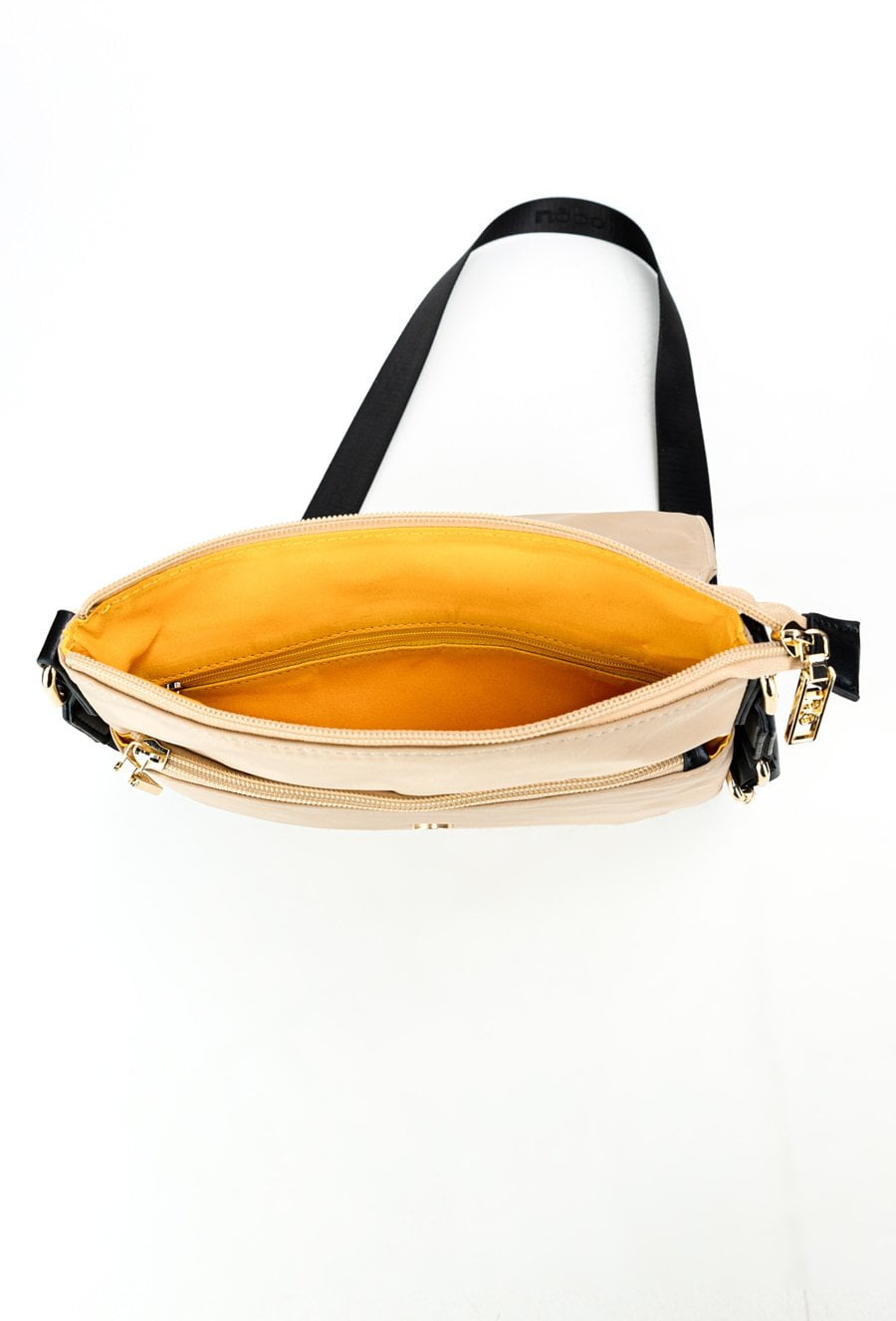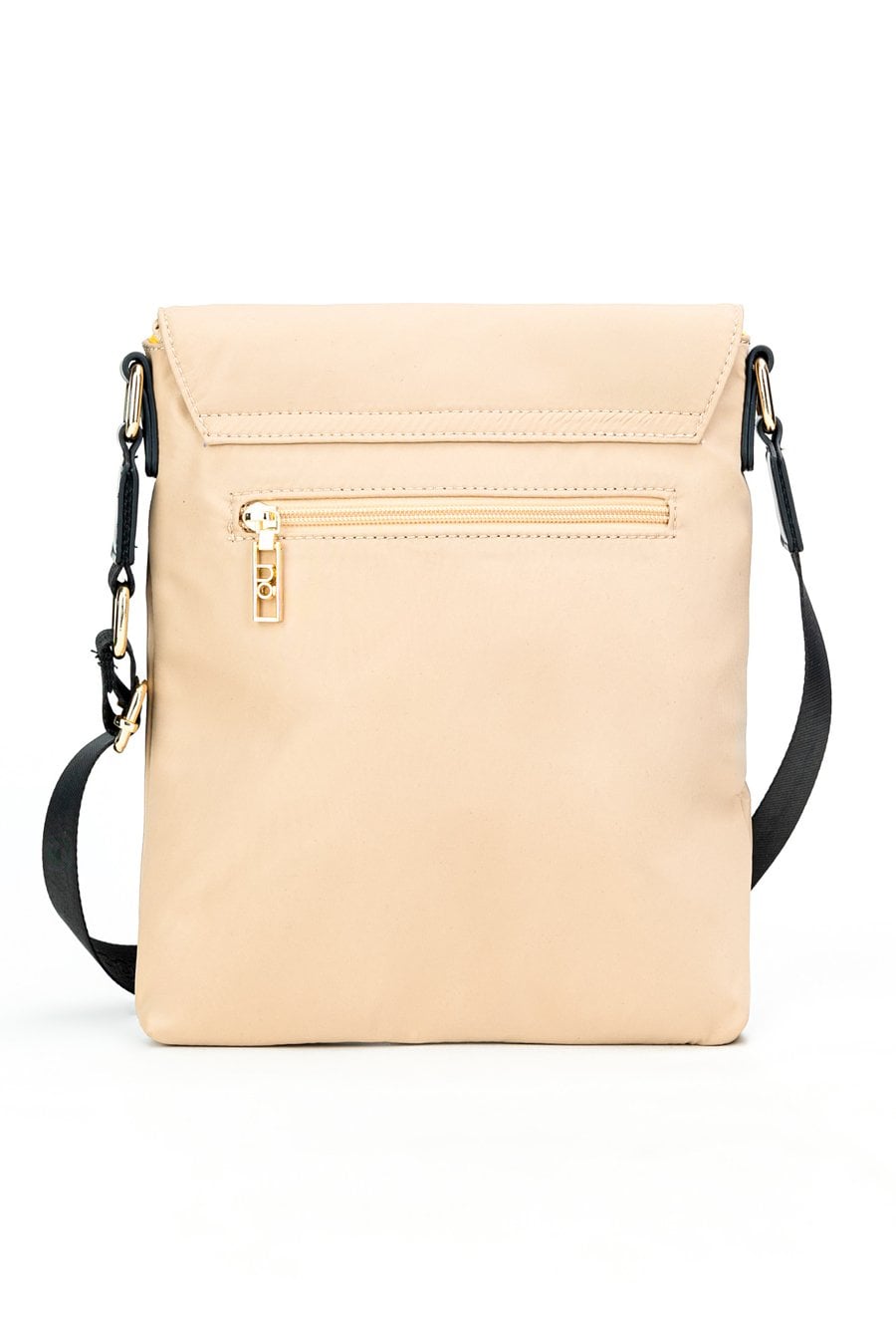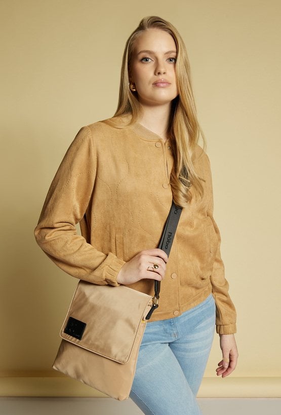 Torba damska o wymiarach 23,5 cm x 28 cm x 2 cm. Jednokomorowa, zapinana na suwak oraz klapę z napą, łącząca funkcjonalność z modnym designem. Posiada praktyczne kieszonki z przodu i z tyłu, zapinane na suwak, idealne na drobiazgi. Zawieszona na regulowanym pasku, który zapewnia komfort noszenia. Idealna na co dzień! Torbę należy przechowywać w dołączonym woreczku