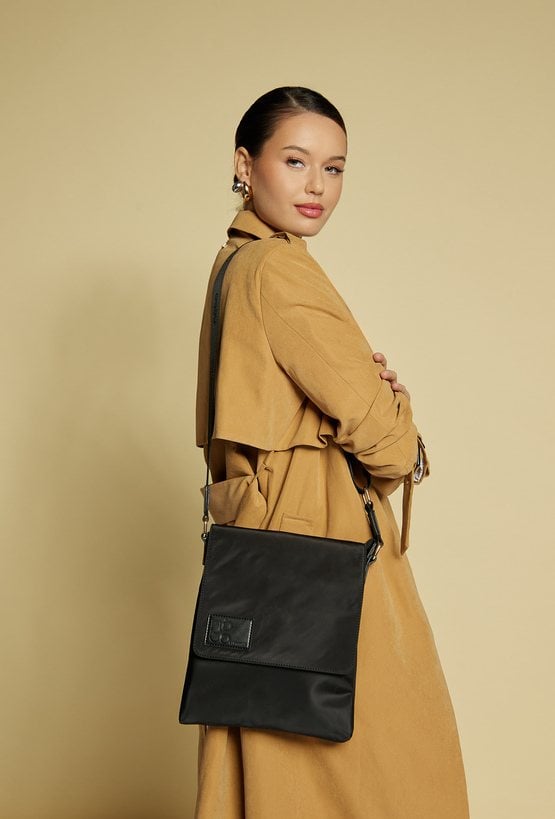 Torba damska o wymiarach 23,5 cm x 28 cm x 2 cm. Jednokomorowa, zapinana na suwak oraz klapę z napą, łącząca funkcjonalność z modnym designem. Posiada praktyczne kieszonki z przodu i z tyłu, zapinane na suwak, idealne na drobiazgi. Zawieszona na regulowanym pasku, który zapewnia komfort noszenia. Idealna na co dzień! Torbę należy przechowywać w dołączonym woreczku