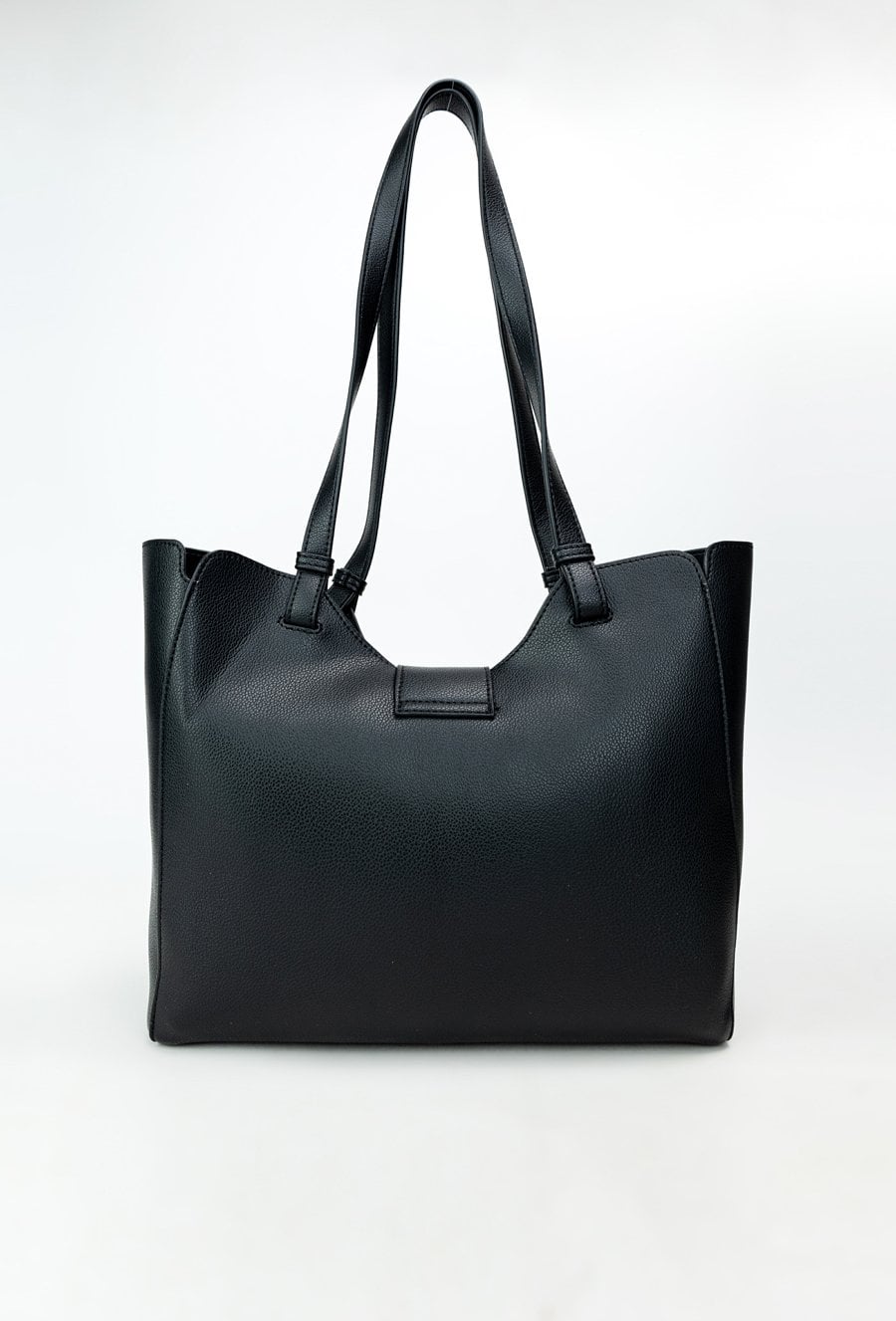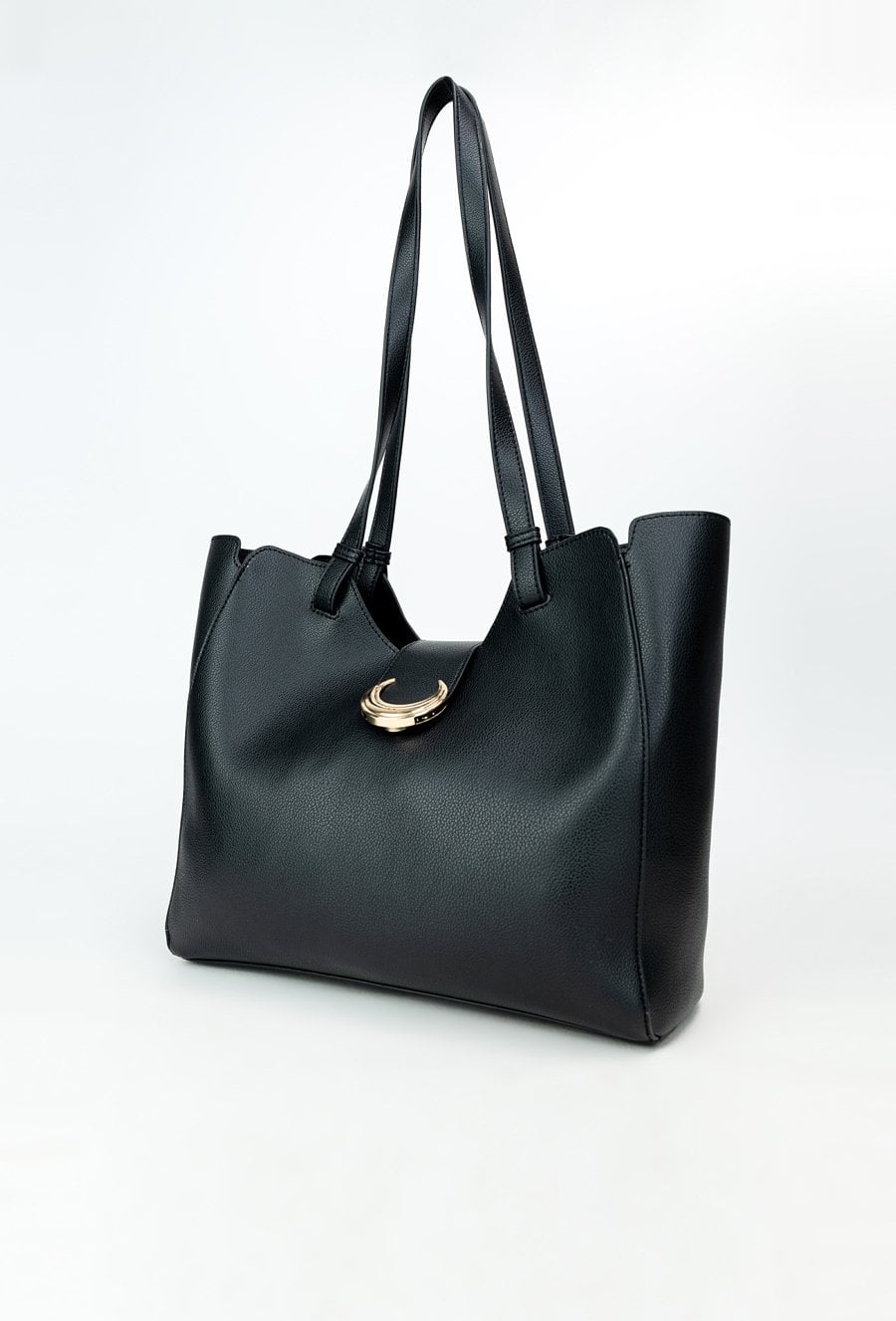 Elegancka torba damska typu shopper o wymiarach 35 cm x 24,5 cm x 13 cm. Jednokomorowa, zapinana na małą klapę z napą, zawieszona na wygodnych rączkach. W zestawie znajduje się praktyczna saszetka (32 cm x 23,5 cm x 8 cm) z regulowanym, odpinanym paskiem, którą można nosić oddzielnie lub razem z torbą. Torbę należy przechowywać w dołączonym woreczku.