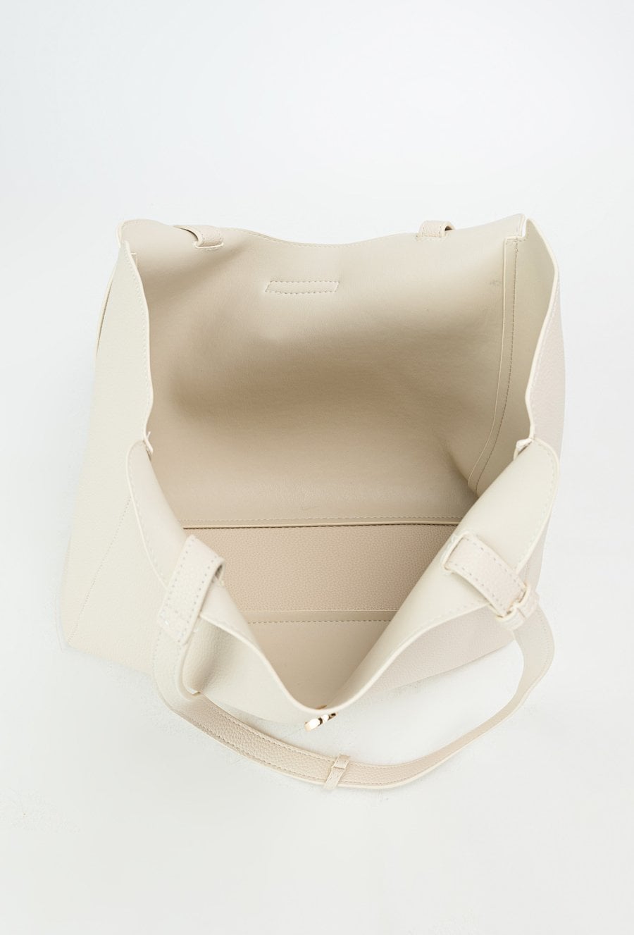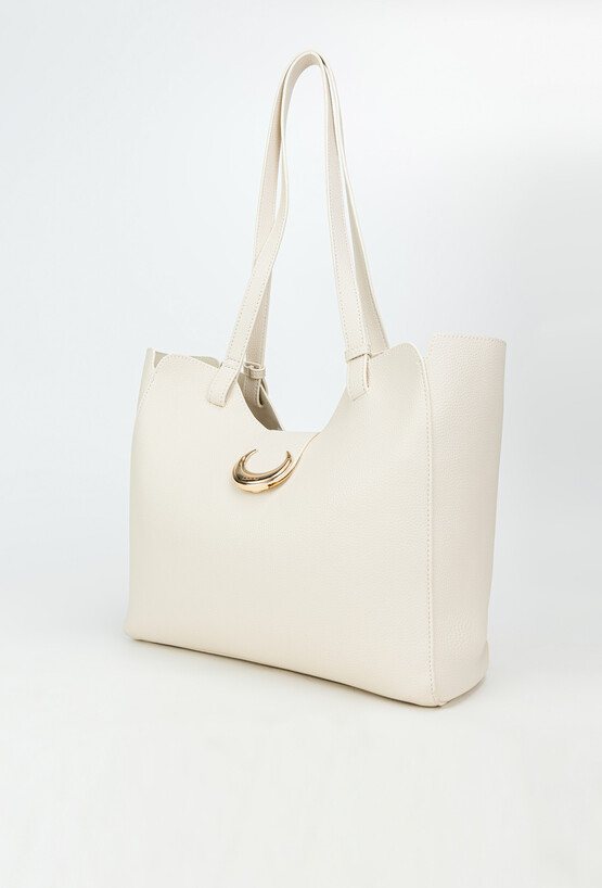 Elegancka torba damska typu shopper o wymiarach 35 cm x 24,5 cm x 13 cm. Jednokomorowa, zapinana na małą klapę z napą, zawieszona na wygodnych rączkach. W zestawie znajduje się praktyczna saszetka (32 cm x 23,5 cm x 8 cm) z regulowanym, odpinanym paskiem, którą można nosić oddzielnie lub razem z torbą. Torbę należy przechowywać w dołączonym woreczku.