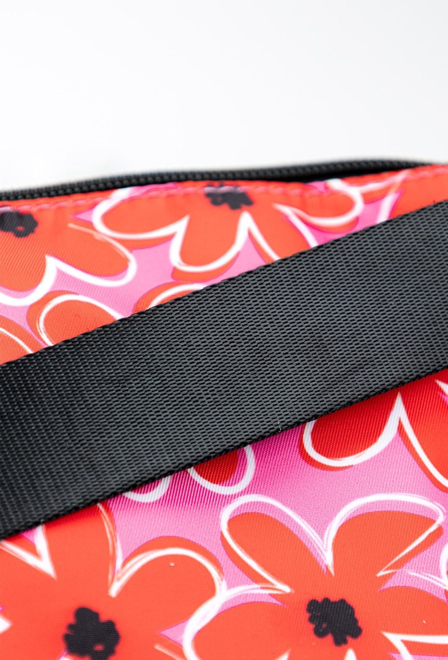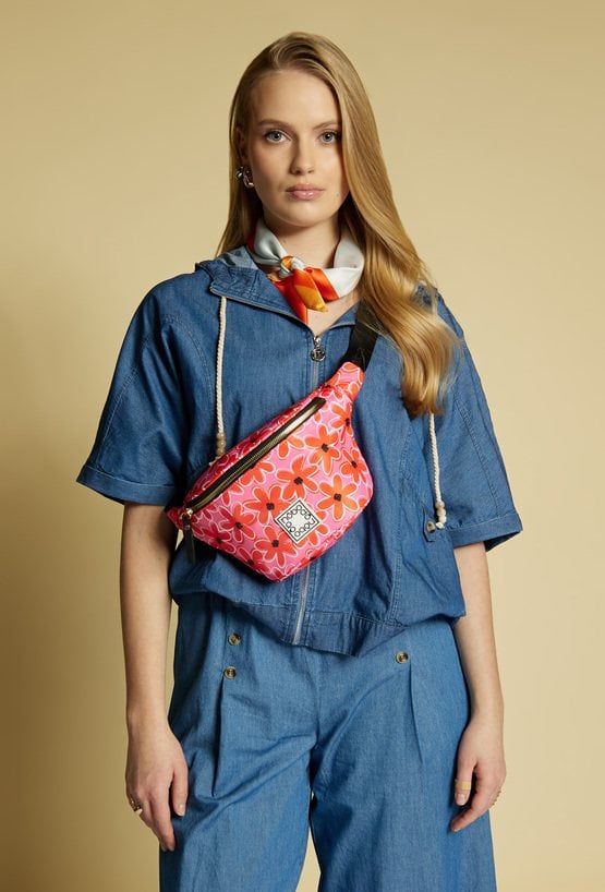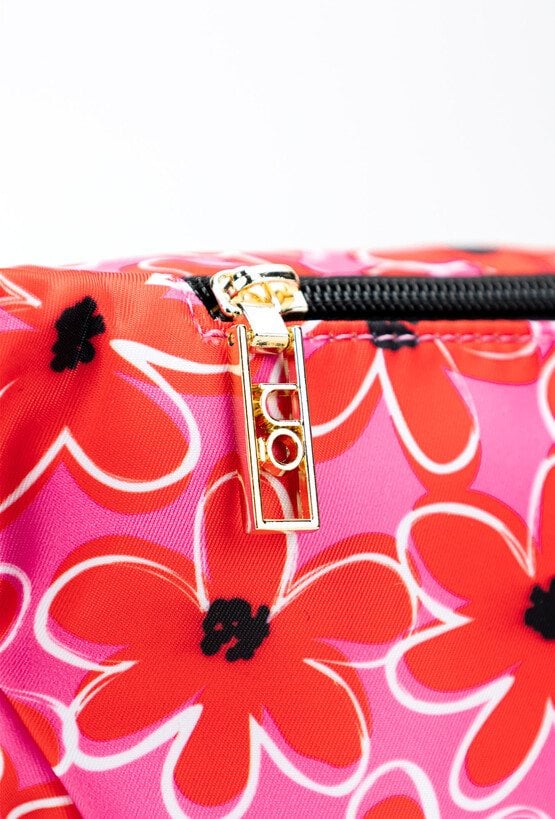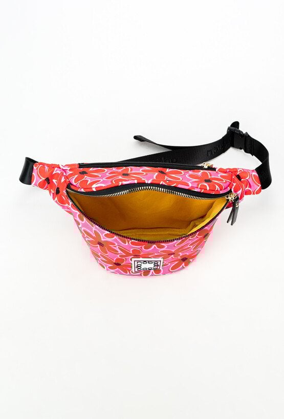 Wzorzysta, sportowa torebka typu nerka, idealna na wiosenne dni. Jednokomorowa, z dodatkową kieszonką wewnątrz oraz jedną z tyłu na zewnątrz, zapewniającą wygodny dostęp do drobiazgów. Intensywne kolory wzoru dodają energii i doskonale uzupełnią wiosenne stylizacje. Torbę należy przechowywać w dołączonym woreczku. Wymiary: 25 cm x 14 cm x 6 cm.