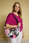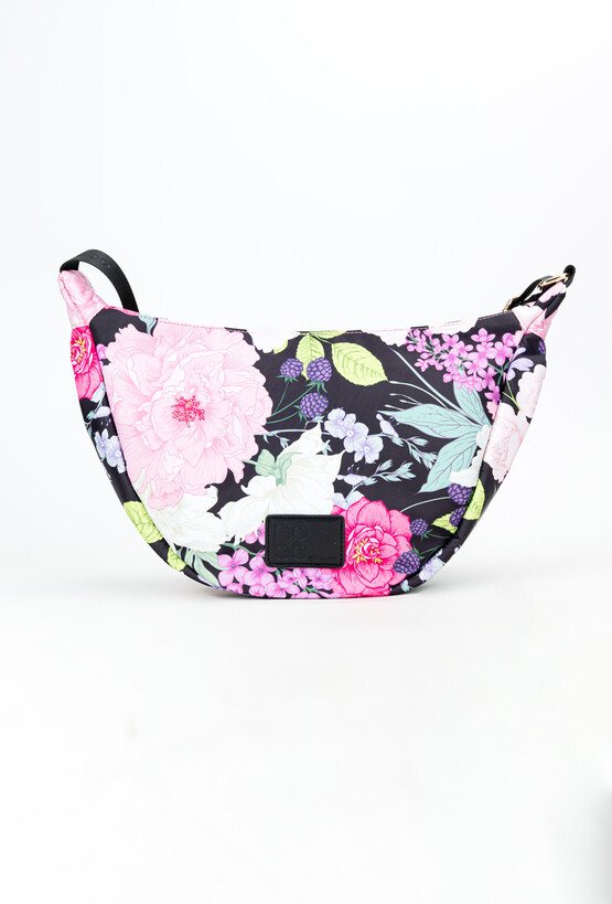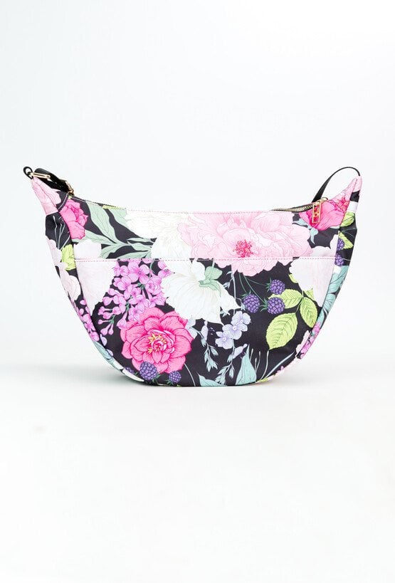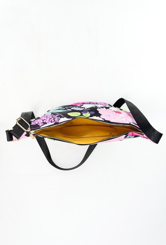 Torba damska typu crossbody z efektownym, kwiatowym wzorem, który dodaje jej uroku. Jednokomorowa, z kontrastową żółtą podszewką i dodatkową kieszonką wewnątrz, ułatwiającą organizację drobiazgów. Zawieszona na regulowanym pasku, dzięki czemu można nosić ją na dowolnej wysokości. Z tyłu posiada praktyczną kieszonkę zapinaną na suwak. Torbę należy przechowywać w dołączonym woreczku. Wymiary: 35 cm x 22,5 cm x 8 cm.