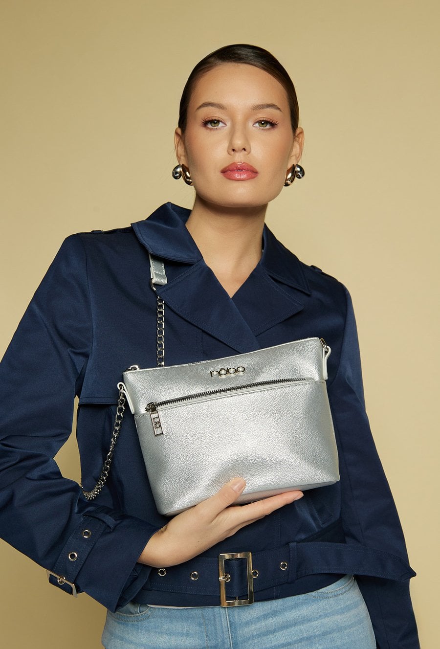 Elegancka torebka damska typu crossbody o wymiarach 23 cm x 18 cm x 8 cm. Jednokomorowa, z dodatkową kieszonką w środku, zapewniającą porządek w przechowywaniu drobiazgów. Zapinana od góry na suwak, zawieszona na pasku z ozdobnym elementem łańcuszka. Z przodu znajduje się dodatkowa kieszonka z zapięciem na suwak, idealna na najważniejsze akcesoria. Torbę należy przechowywać w załączonym woreczku