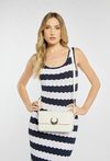 Elegancka wizytowa torebka z klapą – stylowa i praktyczna. Pojemna, jednokomorowa, z dodatkową kieszonką na drobiazgi. Zawieszona na regulowanym pasku, zapewnia wygodę noszenia i dopasowanie do każdej stylizacji. Torbę należy przechowywać w dołączonym woreczku. Wymiary: 22,5 cm x 13,5 cmx 6 cm.